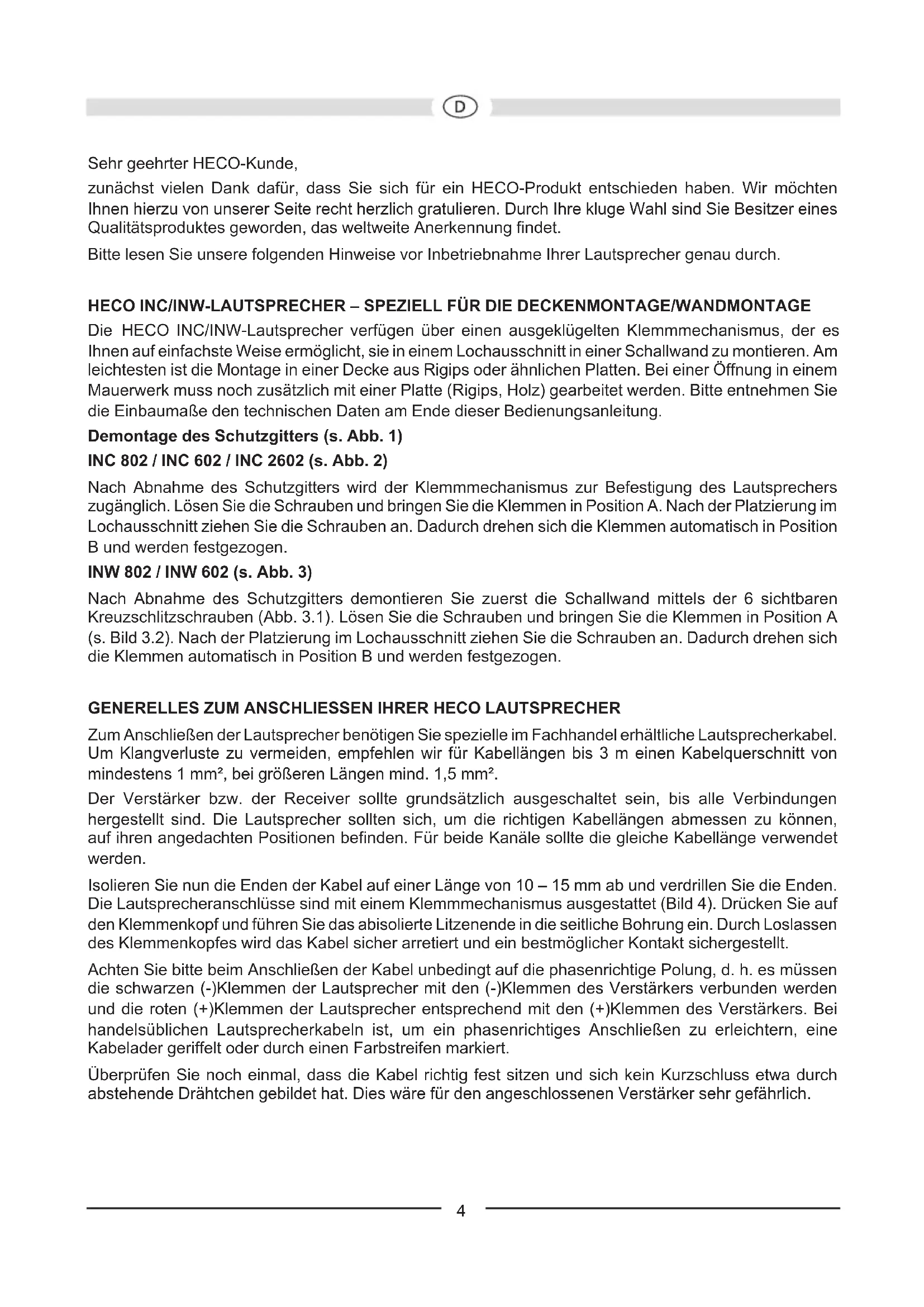 INC 2602 - Lautsprecher HECO - Kostenlose Bedienungsanleitung