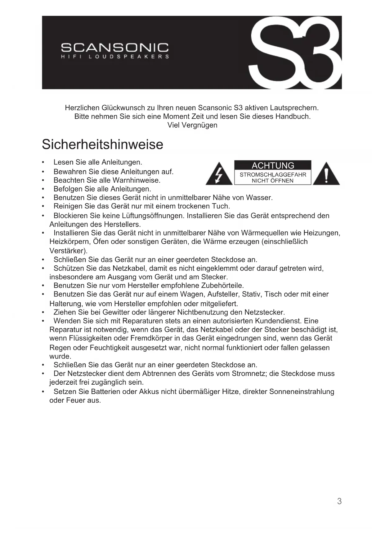 Herzlichen Glückwunsch zu ihren neuen Scansonic S3 aktiven Lautsprechern.