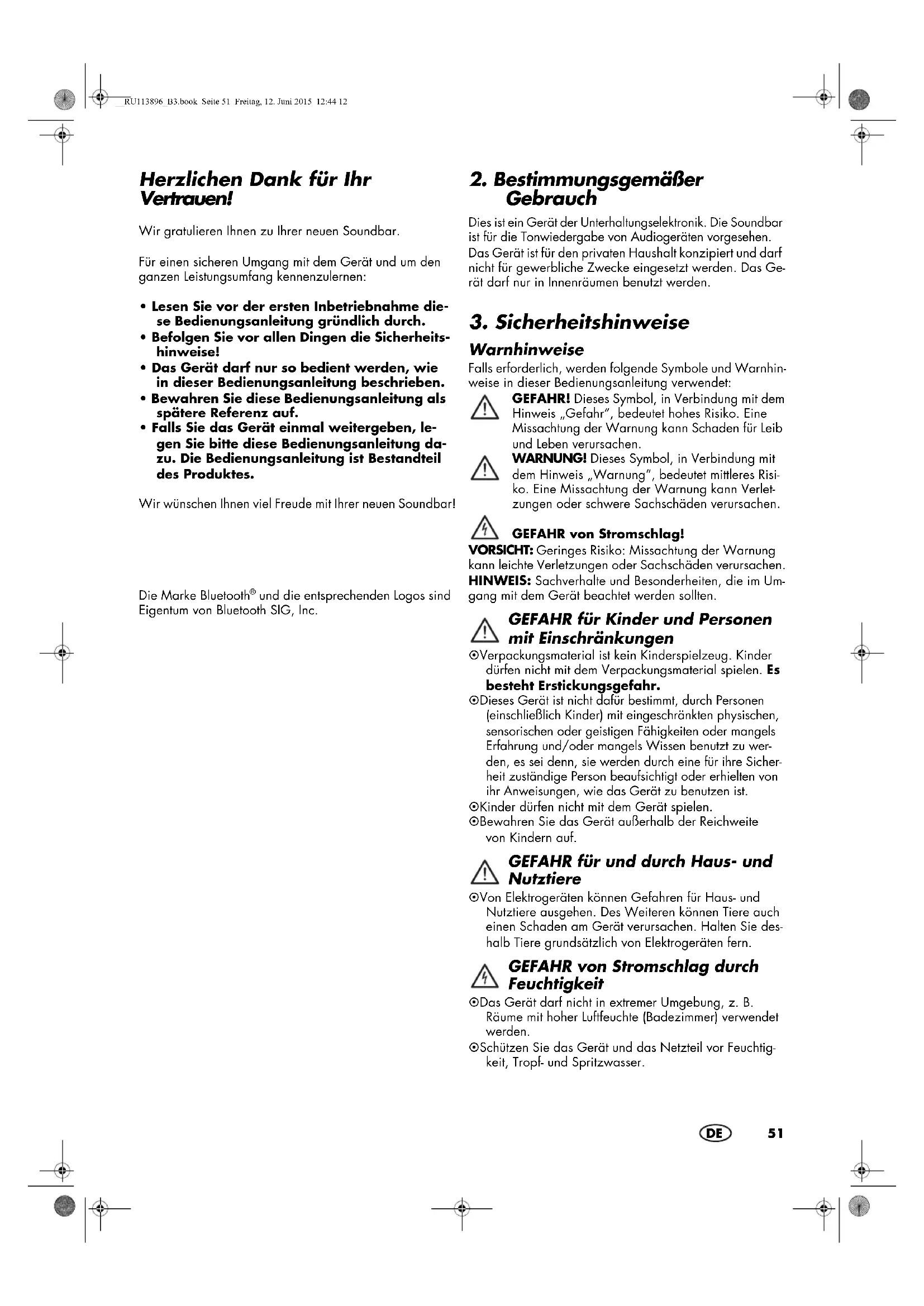 - Falls Sie das Gerät einmal weitergeben, le- gen Sie bitte diese Bedienungsanleitung da- zu. Die Bedienungsanleitung ist Bestandteil des Produktes. Wir wünschen Ihnen viel Freude mit Ihrer neuen Soundbar! Die Marke Bluetooth