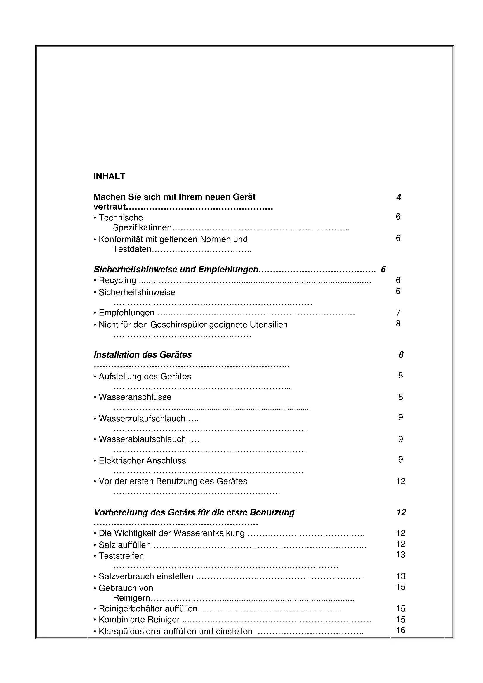 - Klarspüldosierer auffüllen und einstellen ………………………………. 16Beladen des Geschirrspülers . …………………………………………………….