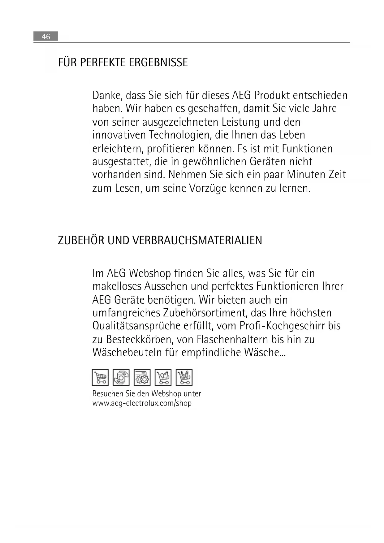 Danke, dass Sie sich für dieses AEG Produkt entschieden haben. Wir haben es geschaffen, damit Sie viele Jahre von seiner ausgezeichneten Leistung und den innovativen Technologien, die Ihnen das Leben erleichtern, profitieren können. Es ist mit Funktionen ausgestattet, die in gewöhnlichen Geräten nicht vorhanden sind. Nehmen Sie sich ein paar Minuten Zeit zum Lesen, um seine Vorzüge kennen zu lernen.