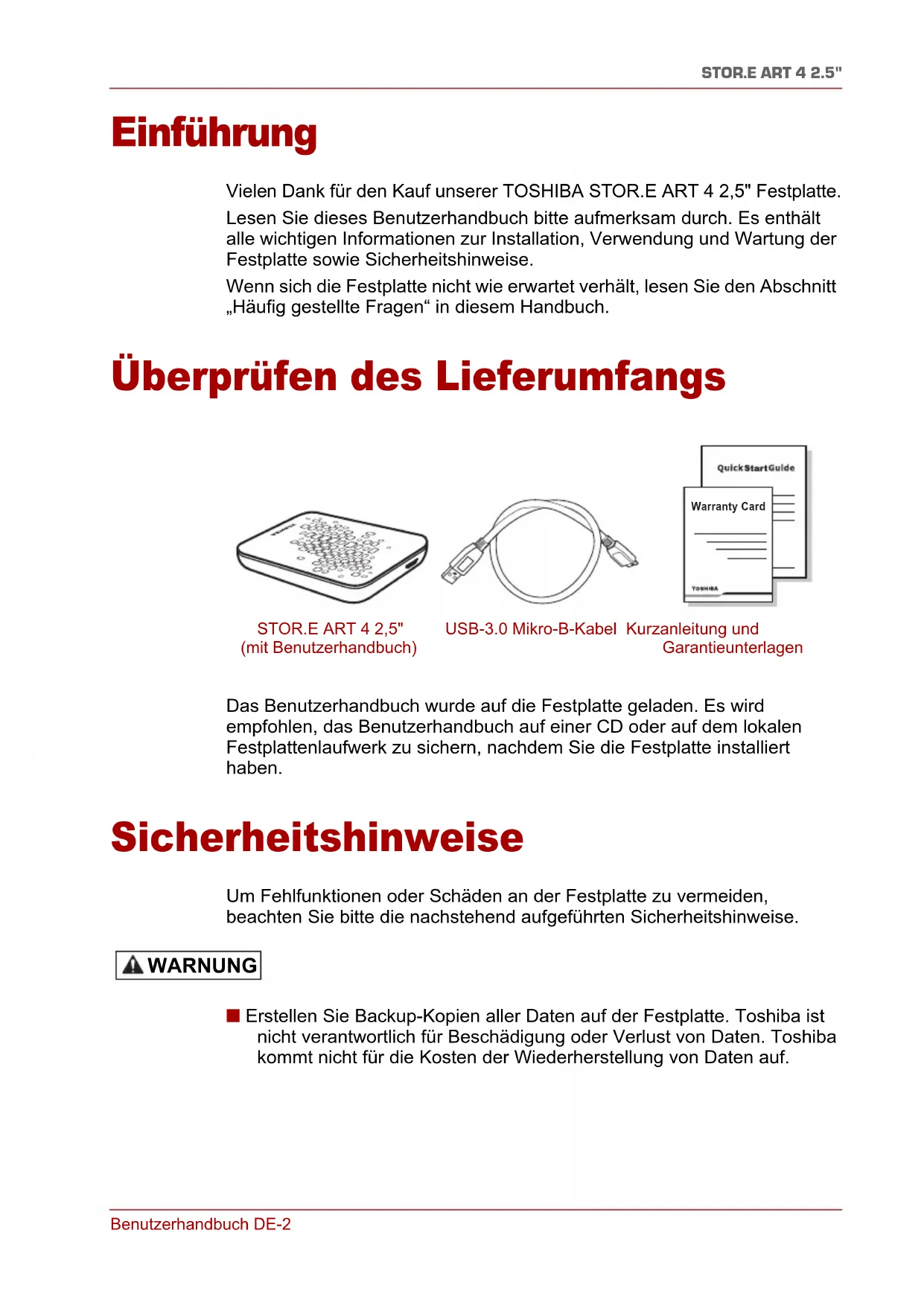 (mit Benutzerhandbuch) USB-3.0 Mikro-B-Kabel Kurzanleitung und Garantieunterlagen WARNUNGBenutzerhandbuch DE-3