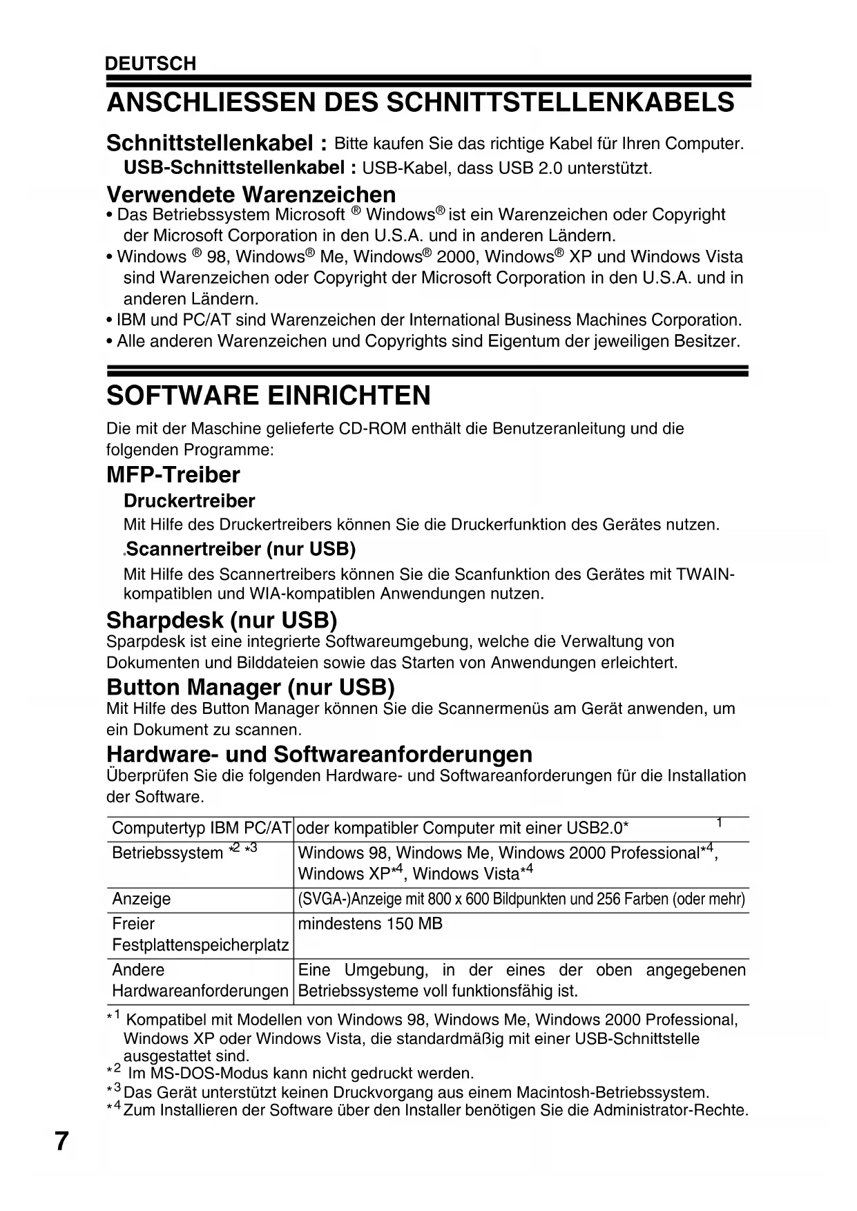 - Windows® 98, Windows® Me, Windows® 2000, Windows® XP und Windows Vista sind Warenzeichen oder Copyright der Microsoft Corporation in den U.S.A. und in anderen Ländern.