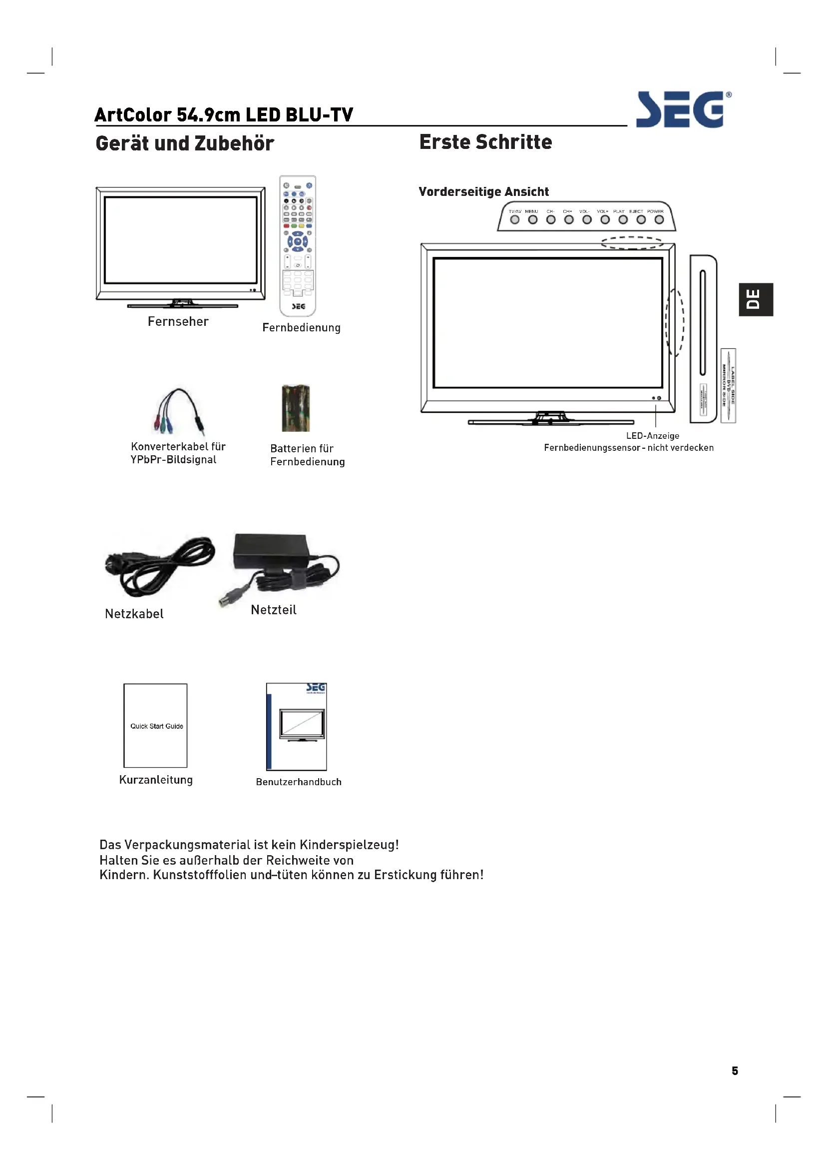 Laden Sie die Anleitung für Ihr Fernseher kostenlos im PDF-Format! Finden Sie Ihr Handbuch ArtColor - SEG und nehmen Sie Ihr elektronisches Gerät wieder in die Hand. Auf dieser Seite sind alle Dokumente veröffentlicht, die für die Verwendung Ihres Geräts notwendig sind. ArtColor von der Marke SEG.