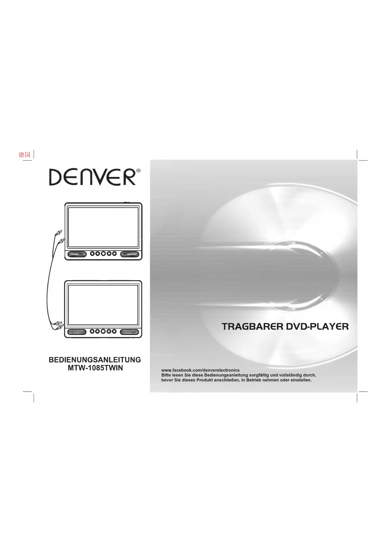 MTW1085TWIN - Tragbarer DVD-Player DENVER - Kostenlose Bedienungsanleitung