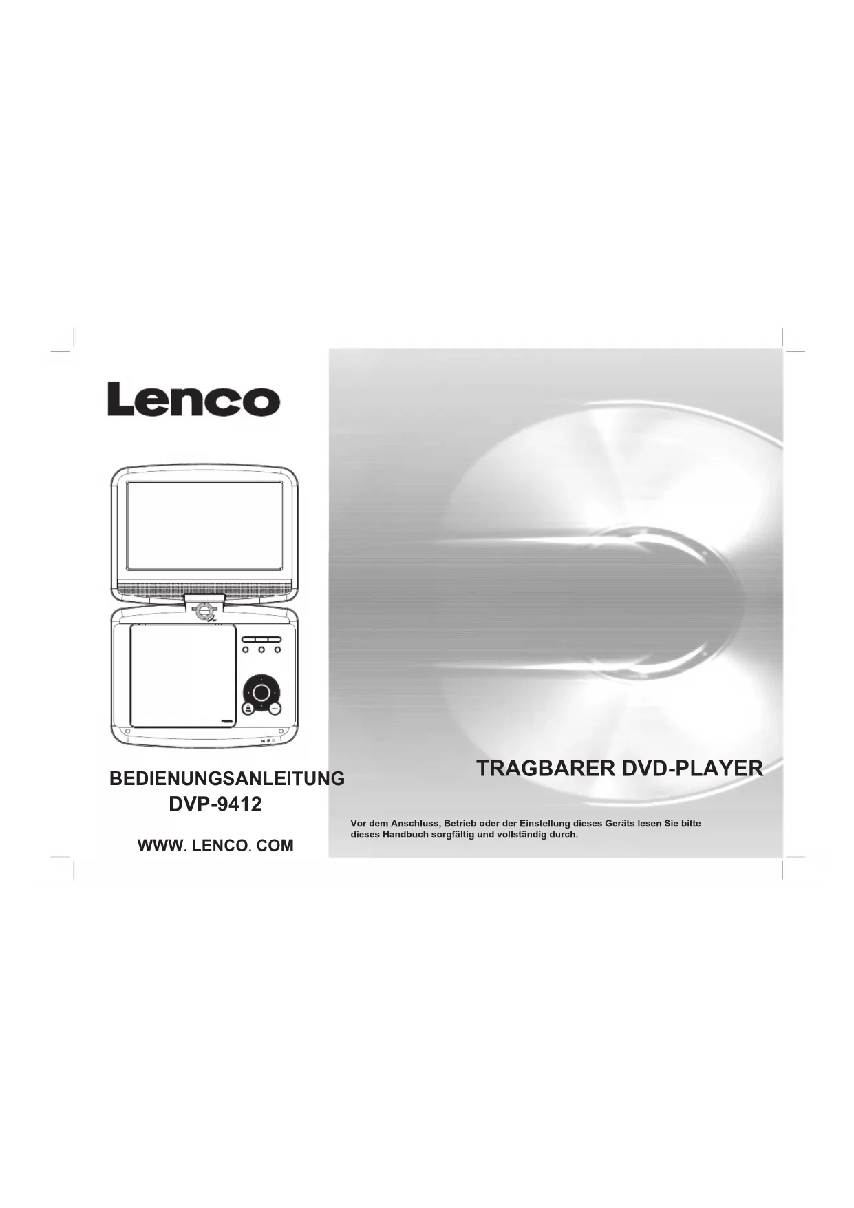 DVP9412 - Tragbarer DVD-Player LENCO - Kostenlose Bedienungsanleitung