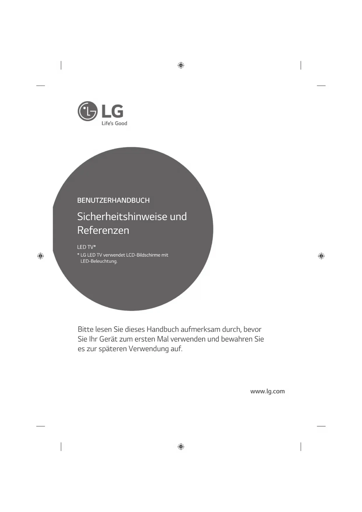 - LG LED TV verwendet LCD-Bildschirme mit LED-Beleuchtung.2 DEUTSCH Sicherheitshinweise Bevor Sie das Produkt zum ersten Mal verwenden, lesen Sie diese Sicherheitshinweise bitte aufmerksam durch. WARNUNG Stellen Sie das TV-Gerät mit Fernsteuerung nicht in folgenden Umgebungen auf: tUnter direkter Sonneneinstrahlung tIn Bereichen mit hoher Luftfeuchtigkeit, wie z.B. einem Badezimmer tIn der Nähe von Hitzequellen, wie z.B. Öfen und anderen hitzeerzeugenden Geräten tIn der Nähe von Küchenzeilen oder Befeuchtern, wo das Gerät leicht Dampf oder Öl ausgesetzt sein kann tIn Bereichen, die Regen oder Wind ausgesetzt sind tIn der Nähe von Behältern mit Wasser, wie z.B. Vasen Andernfalls kann es zu Bränden, Stromschlägen, Fehlfunktionen oder Produktverformungen kommen. Schützen Sie das Gerät vor Staub. Es besteht Brandgefahr. Wenn Sie das Gerät vom Stromnetz trennen möchten, müssen Sie den Netzstecker aus der Steckdose ziehen. Dieser Stecker muss jederzeit gut zugänglich sein. Berühren Sie den Netzstecker nicht mit nassen Händen. Wenn die Kontaktstifte nass oder verstaubt sind, trocknen Sie den Netzstecker vollständig ab, bzw. befreien Sie ihn von Staub. Feuchtigkeit erhöht die Gefahr eines tödlichen Stromschlags. Stellen Sie sicher, dass das Stromkabel geerdet ist. (Außer bei Geräten, die nicht geerdet sind.) Bei Nichtbeachtung besteht die Gefahr von Verletzungen oder eines tödlichen Stromschlags. Das Stromkabel muss vollständig in die Steckdose eingesteckt werden. Ist das Stromkabel nicht fest in die Steckdose eingesteckt, besteht Brandgefahr. Das Stromkabel darf nicht mit heißen Gegenständen wie einem Heizkörper in Berührung kommen. Andernfalls bestehen Brandgefahr und die Gefahr von Stromschlägen. Stellen Sie keinen schweren Gegenstand oder das Gerät selbst auf das Stromkabel. Andernfalls kann es zu Bränden und Stromschlägen kommen. Platzieren Sie das Antennenkabel zwischen dem Innen- und Außenbereich des Gebäudes so, dass kein Regen herein ießen kann. Etwaiger Wassereintritt kann zu Schäden am Gerät und Stromschlag führen. Falls das TV-Gerät an der Wand montiert wird, darf es nicht an den Strom- und Signalkabeln auf der Rückseite des TV-Gerätes aufgehängt werden. Anderenfalls besteht die Gefahr von Bränden oder Stromschlägen. Schließen Sie nicht zu viele Elektrogeräte an einer einzelnen Steckdose an. Andernfalls kann es aufgrund von Überhitzung zu Bränden kommen.DEUTSCH