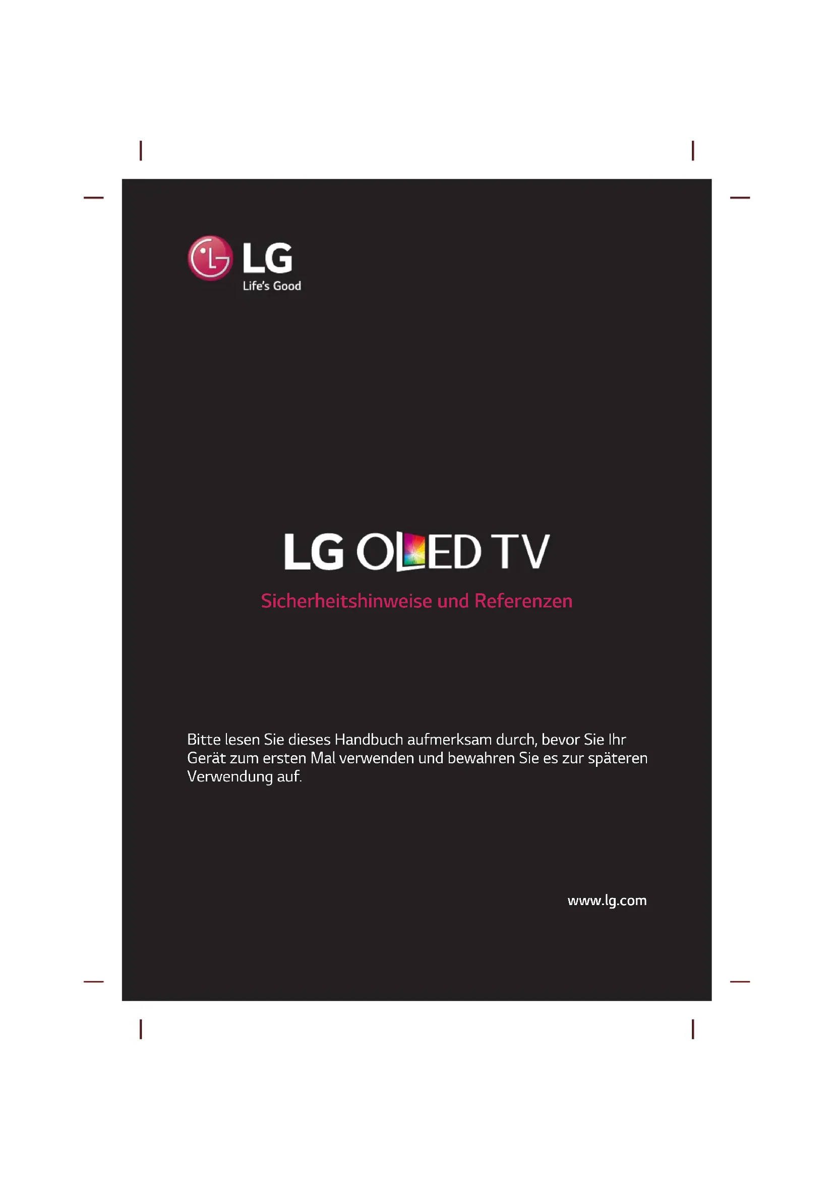 - Only DVB-T2/C/S2 support model only.Bitte lesen Sie dieses Handbuch aufmerksam durch, bevor Sie Ihr Gerät zum ersten Mal verwenden und bewahren Sie es zur späteren Verwendung auf. www.lg.com Sicherheitshinweise und Referenzen2 DEUTSCH Sicherheitshinweise Bevor Sie das Produkt zum ersten Mal verwenden, lesen Sie diese Sicherheitshinweise bitte aufmerksam durch. WARNUNG Stellen Sie das TV-Gerät mit Fernsteuerung nicht in folgenden Umgebungen auf: tUnter direkter Sonneneinstrahlung tIn Bereichen mit hoher Luftfeuchtigkeit, wie z. B. einem Badezimmer tIn der Nähe von Hitzequellen, wie z. B. Öfen und anderen hitzeerzeugenden Geräten tIn der Nähe von Küchenzeilen oder Befeuchtern, wo das Gerät leicht Dampf oder Öl ausgesetzt sein kann tIn Bereichen, die Regen oder Wind ausgesetzt sind tIn der Nähe von Behältern mit Wasser, wie z. B. Vasen Andernfalls kann es zu Bränden, Stromschlägen, Fehlfunktionen oder Produktverformungen kommen. Schützen Sie das Gerät vor Staub. Es besteht Brandgefahr. Wenn Sie das Gerät vom Stromnetz trennen möchten, müssen Sie den Netzstecker aus der Steckdose ziehen. Dieser Stecker muss jederzeit gut zugänglich sein. Berühren Sie den Netzstecker nicht mit nassen Händen. Wenn die Kontaktstifte nass oder verstaubt sind, trocknen Sie den Netzstecker vollständig ab, bzw. befreien Sie ihn von Staub. Feuchtigkeit erhöht die Gefahr eines tödlichen Stromschlags. Stellen Sie sicher, dass das Stromkabel geerdet ist. (Außer bei Geräten, die nicht geerdet sind.) Bei Nichtbeachtung besteht die Gefahr von Verletzungen oder eines tödlichen Stromschlags. Das Stromkabel muss vollständig in die Steckdose eingesteckt werden. Ist das Stromkabel nicht fest in die Steckdose eingesteckt, besteht Brandgefahr. Das Stromkabel darf nicht mit heißen Gegenständen wie einem Heizkörper in Berührung kommen. Andernfalls bestehen Brandgefahr und die Gefahr von Stromschlägen. Stellen Sie keinen schweren Gegenstand oder das Gerät selbst auf das Stromkabel. Andernfalls kann es zu Bränden und Stromschlägen kommen. Platzieren Sie das Antennenkabel zwischen dem Innen- und Außenbereich des Gebäudes so, dass kein Regen hereinießen kann. Etwaiger Wassereintritt kann zu Schäden am Gerät und Stromschlag führen. Falls das TV-Gerät an der Wand montiert wird, darf es nicht an den Strom- und Signalkabeln auf der Rückseite des TV-Gerätes aufgehängt werden. Anderenfalls besteht die Gefahr von Bränden oder Stromschlägen.DEUTSCH