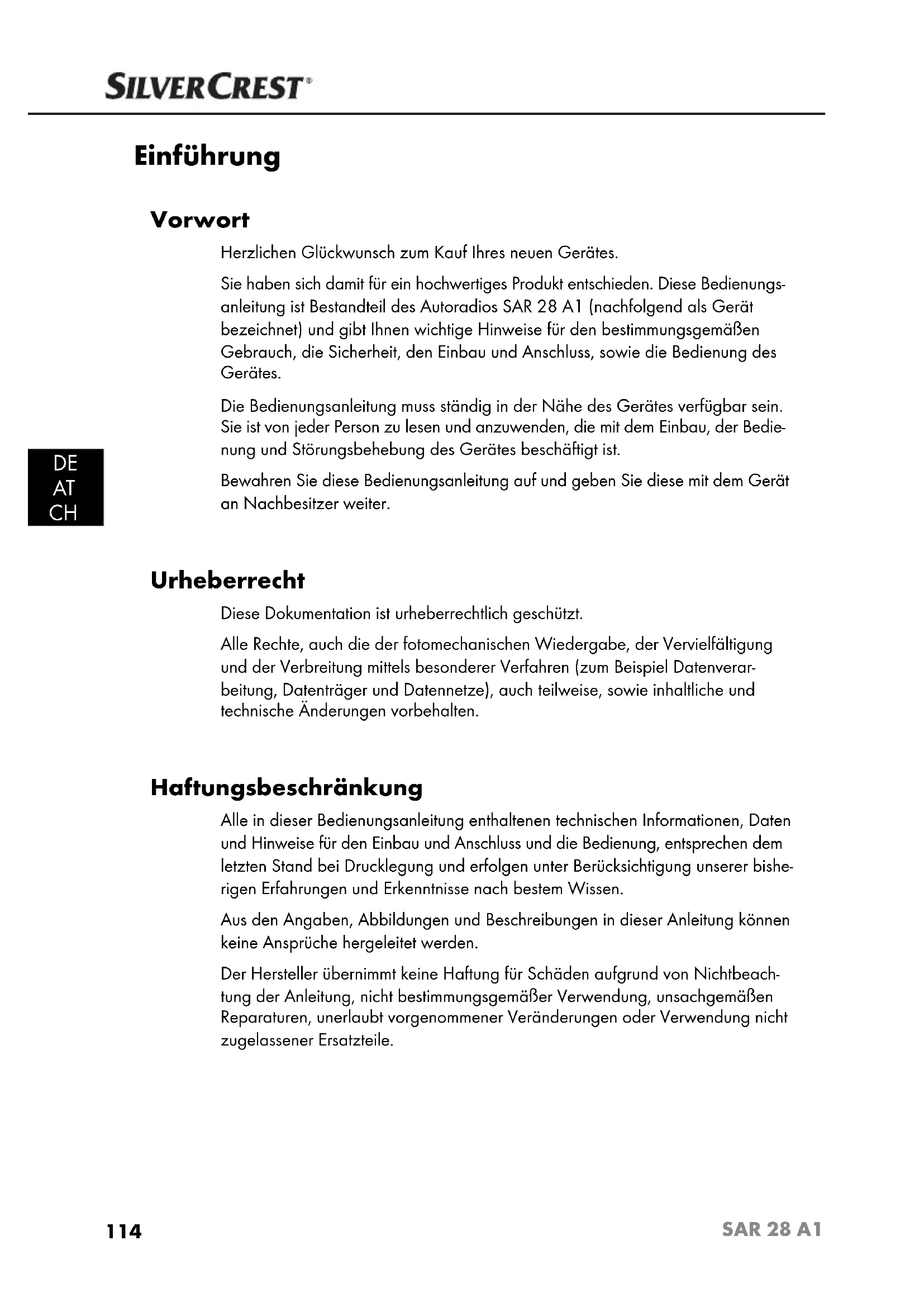 SAR 28 A1 - Autoradio SILVERCREST - Kostenlose Bedienungsanleitung
