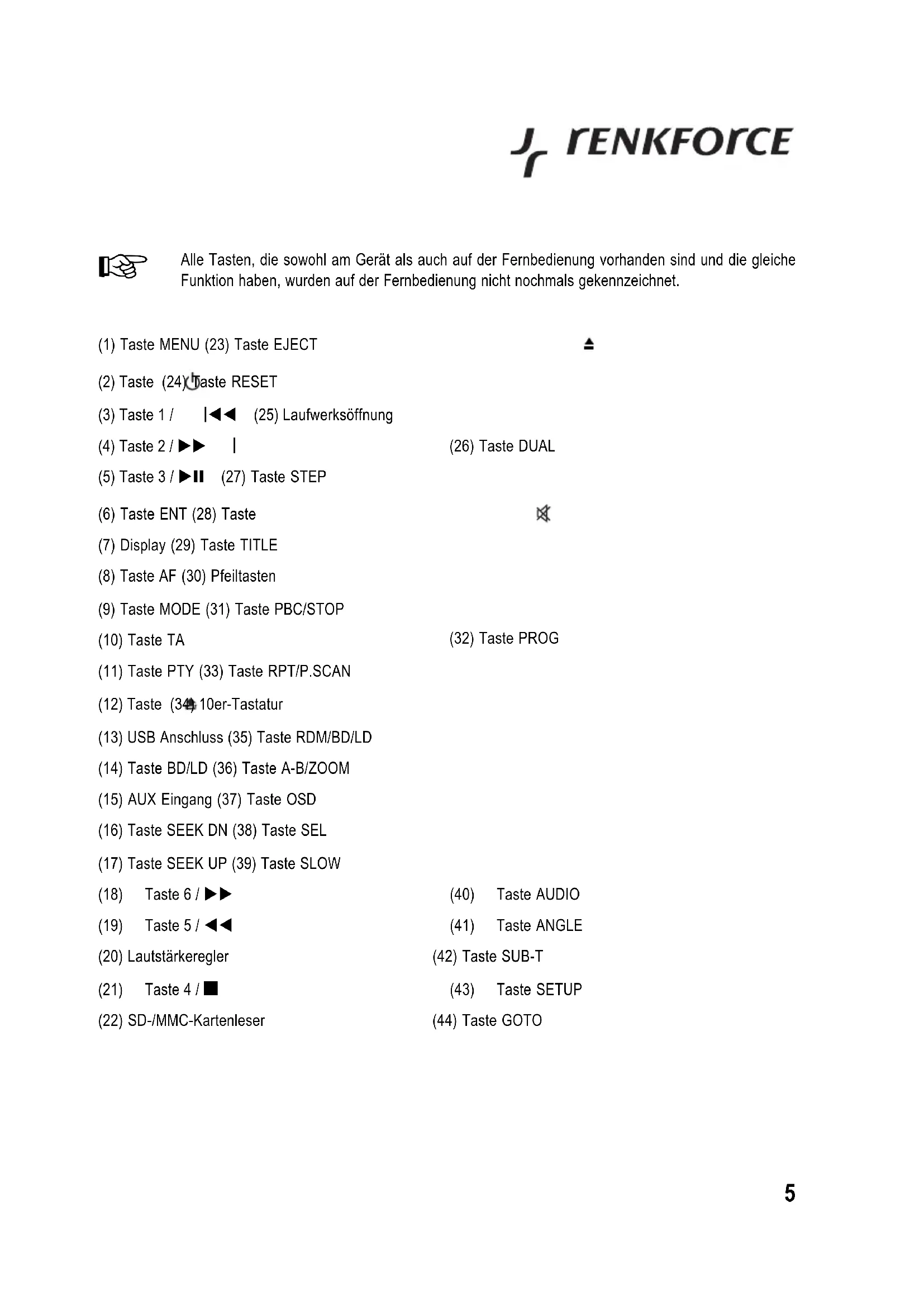 Finden Sie kostenlos die Bedienungsanleitung des Geräts DVD 6311 Renkforce als PDF.