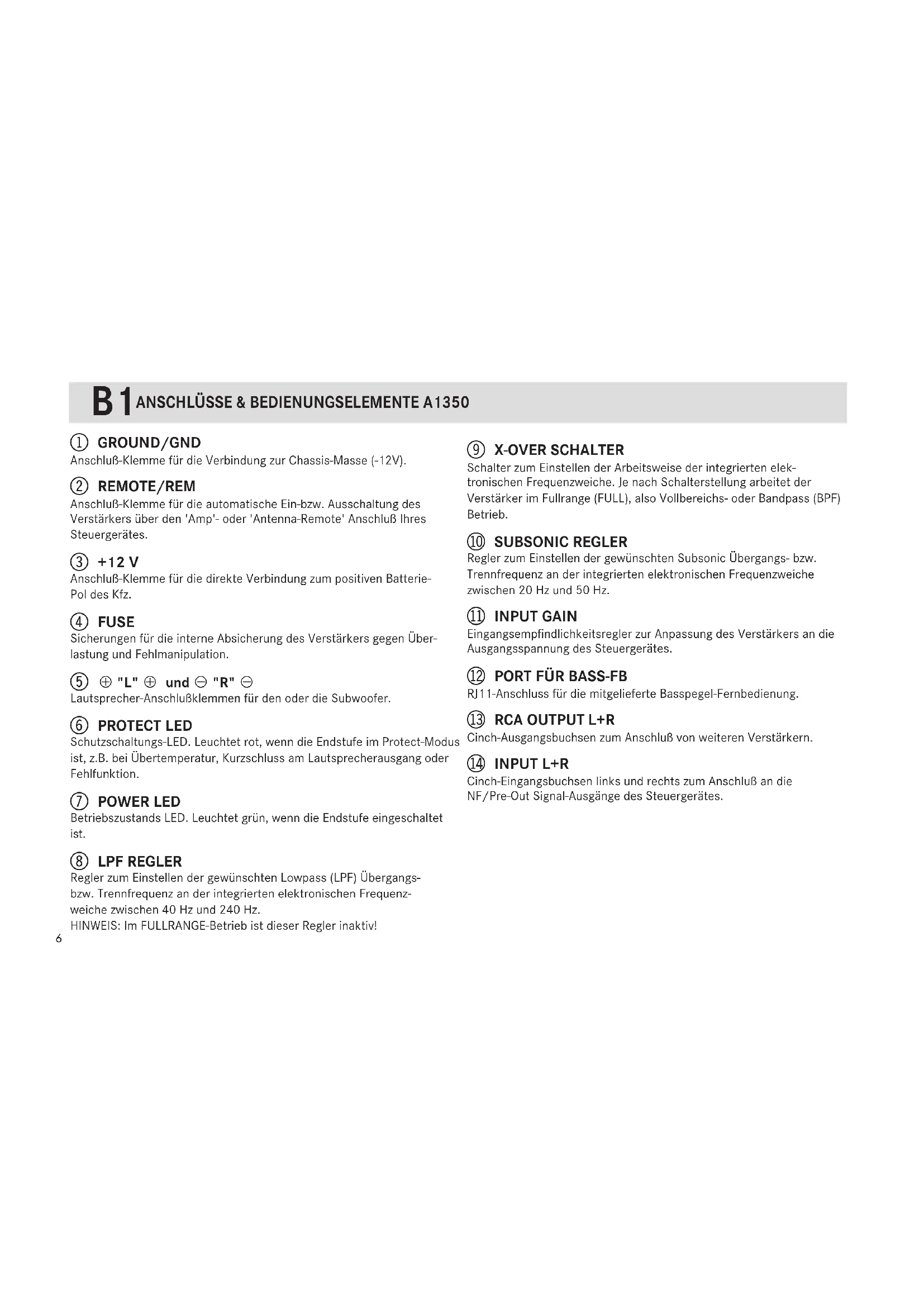 B1 Anschluße & Bedienungselemente A 1350 . . . . . . . . . . . . . . . . . . . . . . . . . . . . . . . . . . . . . . . . . . . . . . . . . . . .