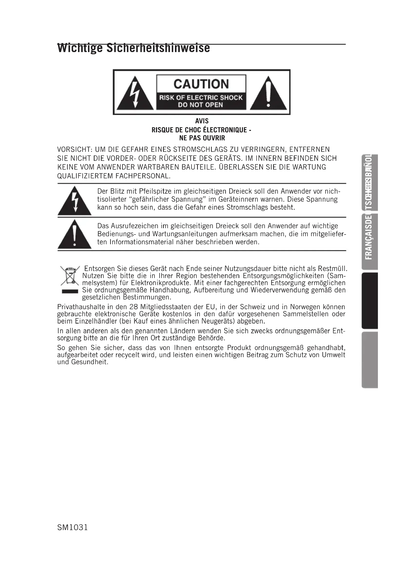 Entsorgen Sie dieses Gerät nach Ende seiner Nutzungsdauer bitte nicht als Restmüll. Nutzen Sie bitte die in Ihrer Region bestehenden Entsorgungsmöglichkeiten (Sam- melsystem) für Elektronikprodukte. Mit einer fachgerechten Entsorgung ermöglichen Sie ordnungsgemäße Handhabung, Aufbereitung und Wiederverwendung gemäß den gesetzlichen Bestimmungen. Privathaushalte in den 28Mitgliedsstaaten der EU, in der Schweiz und in Norwegen können gebrauchte elektronische Geräte kostenlos in den dafür vorgesehenen Sammelstellen oder beim Einzelhändler (bei Kauf eines ähnlichen Neugeräts) abgeben. In allen anderen als den genannten Ländern wenden Sie sich zwecks ordnungsgemäßer Ent- sorgung bitte an die für Ihren Ort zuständige Behörde. So gehen Sie sicher, dass das von Ihnen entsorgte Produkt ordnungsgemäß gehandhabt, aufgearbeitet oder recycelt wird, und leisten einen wichtigen Beitrag zum Schutz von Umwelt und Gesundheit. ENGLISH