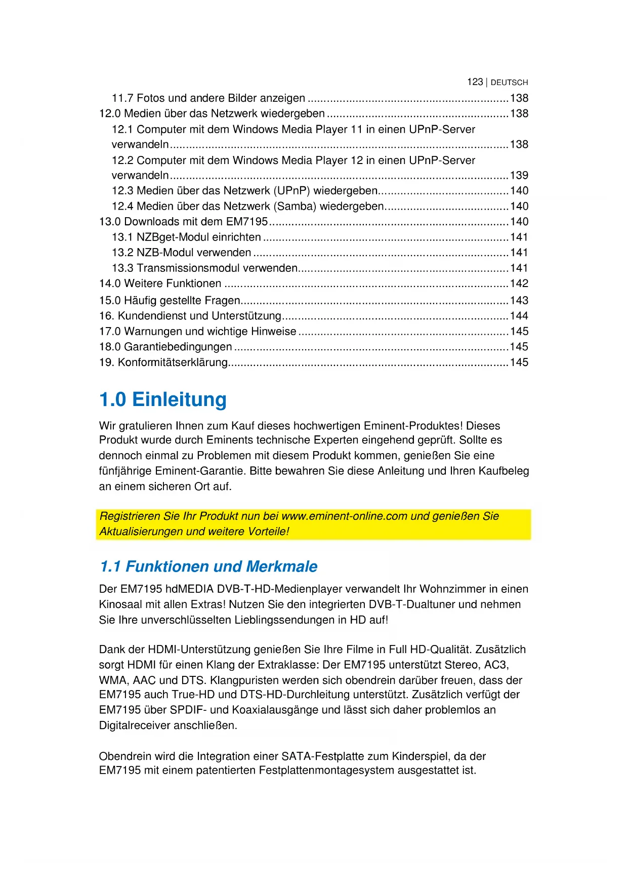 EM7195 - Medienplayer Eminent - Kostenlose Bedienungsanleitung