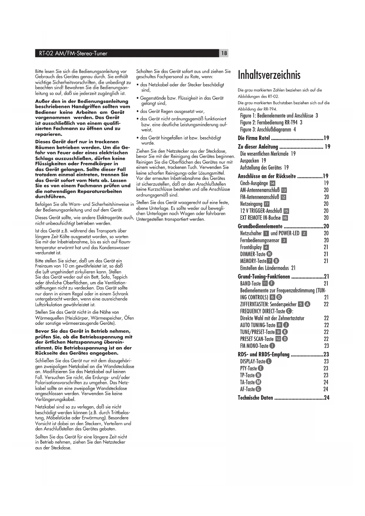 Vielen Dank, daß Sie sich für den Rotel-AM/ FM-Stereo-Tuner RT-02 entschieden haben. Rotels Balanced-Design-Konzept entsprechend verfügt dieser Tuner über ein ausgeklügeltes Platinenlayout und hochwertige Bauteile. Klanglich überzeugt er/elbeno wie in puncto Zuverlösigkeit.