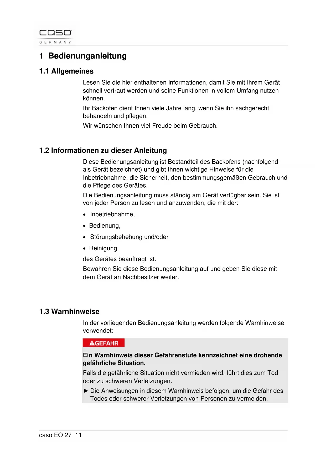 BEDIENUNGSANLEITUNG EO 27 CASO