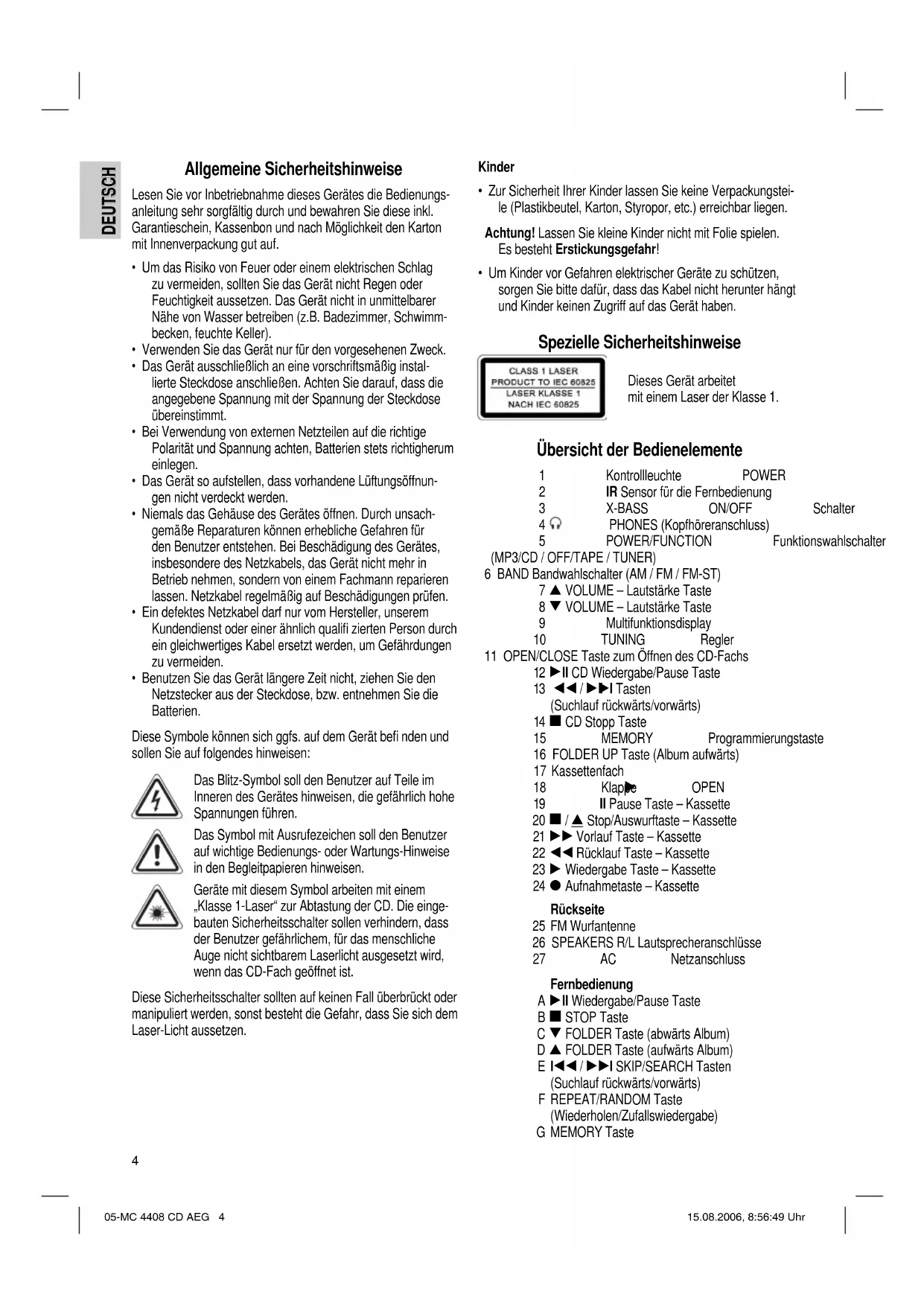 BEDIENUNGSANLEITUNG MC 4408 CDMP3 AEG