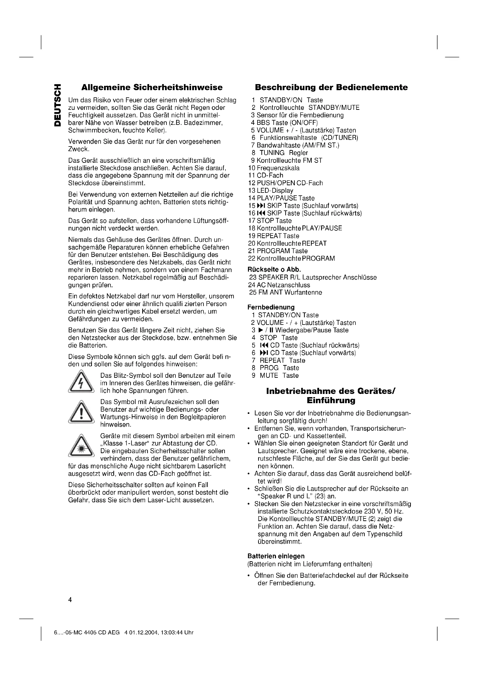 BEDIENUNGSANLEITUNG MC 4405 CD AEG