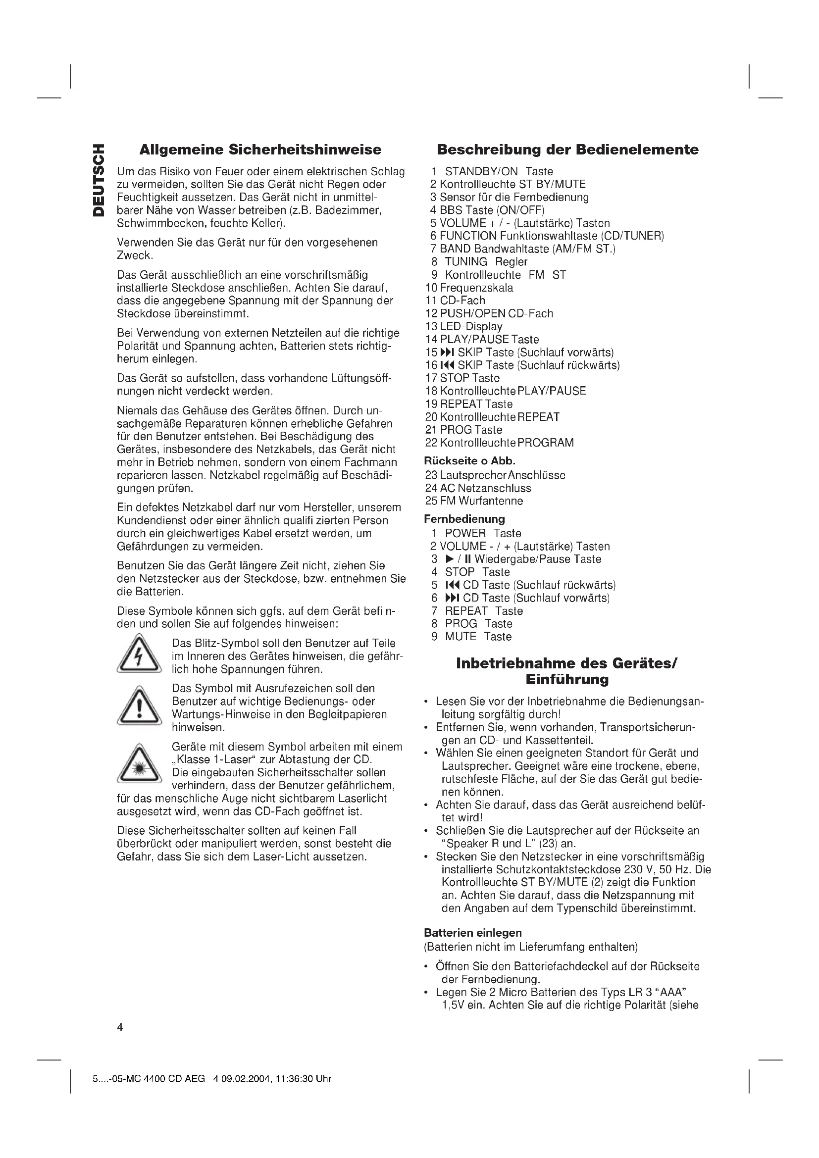 BEDIENUNGSANLEITUNG MC 4400 CD AEG