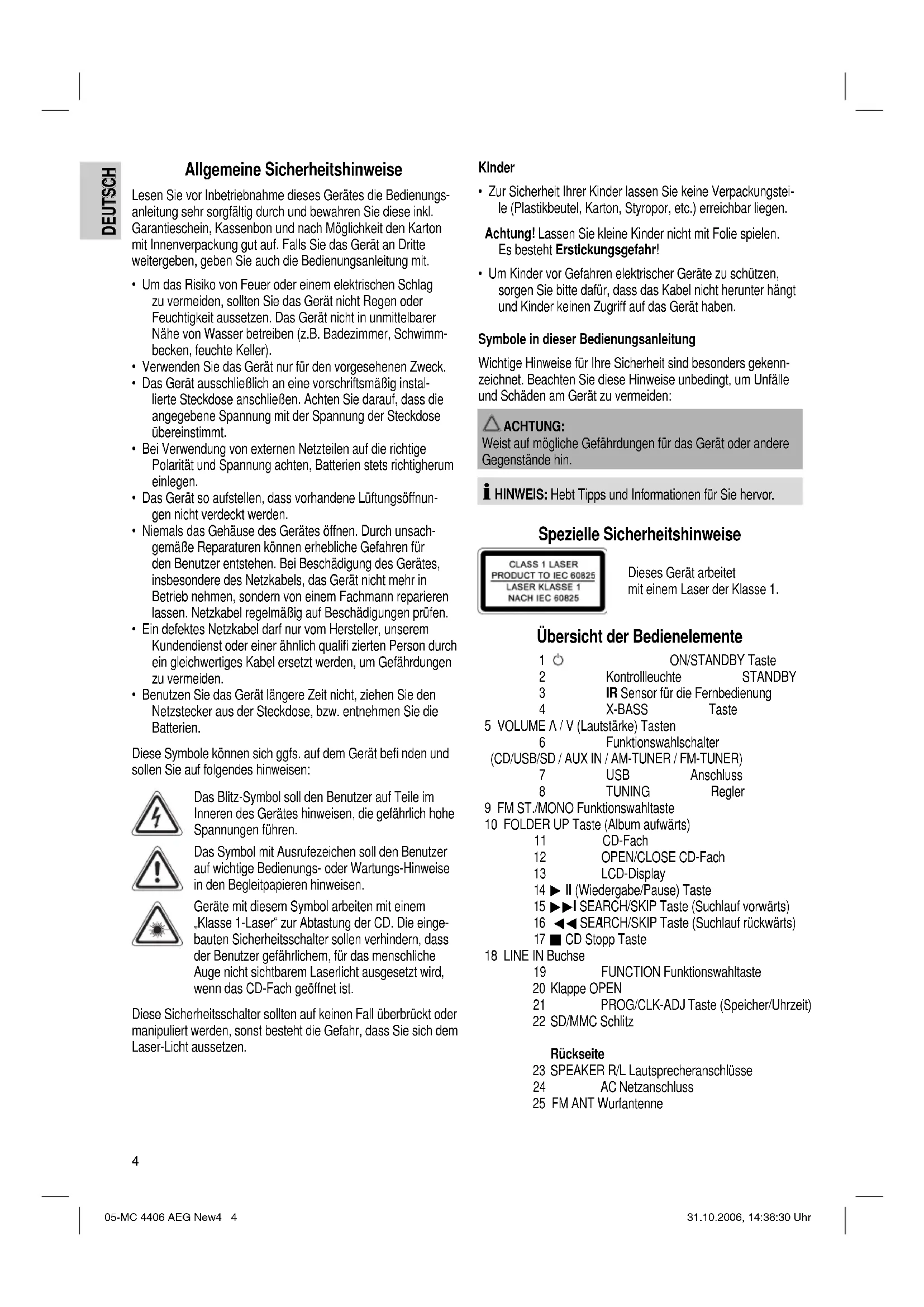 BEDIENUNGSANLEITUNG MC 4406 CD AEG