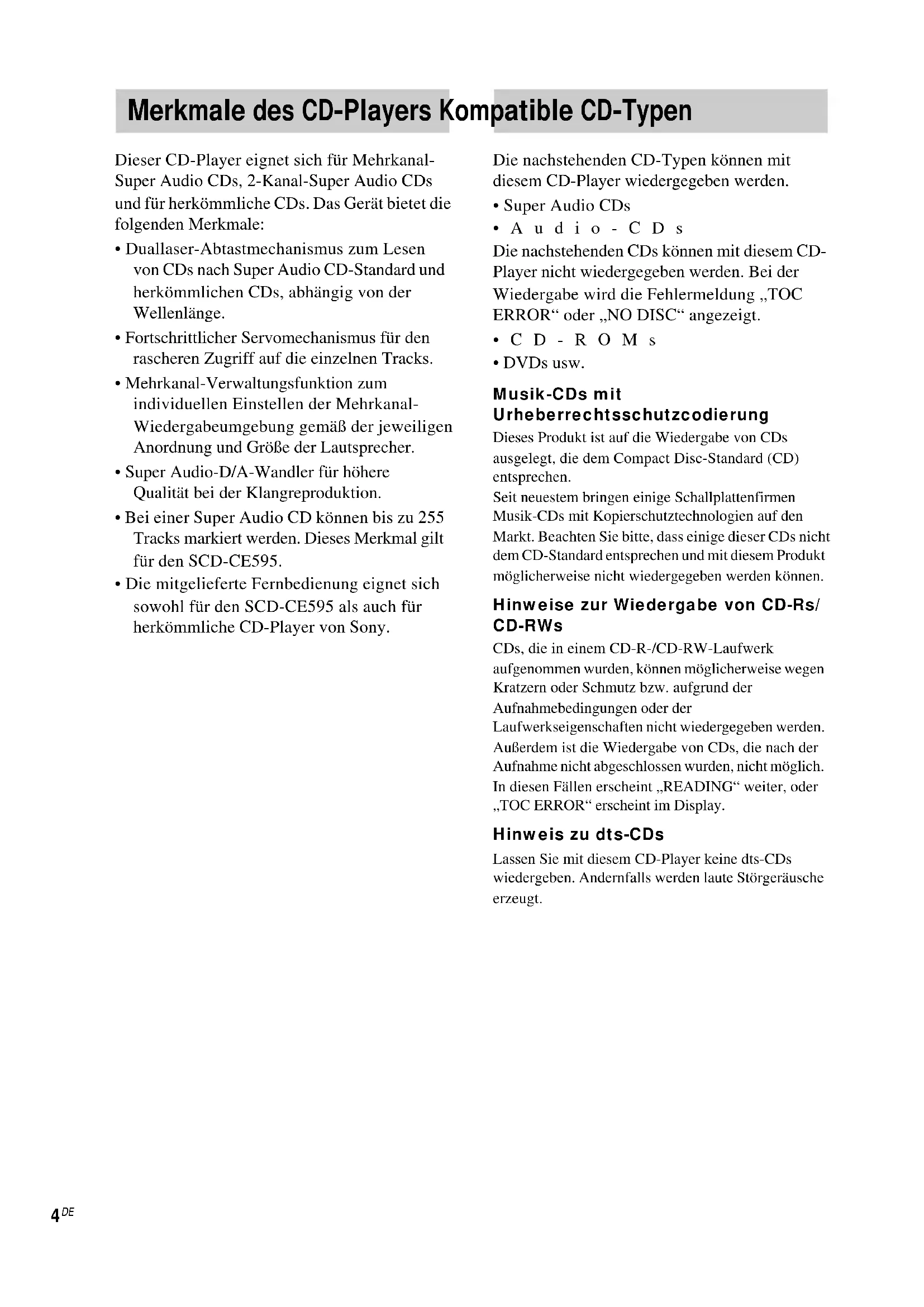 - Bei einer Super Audio CD können bis zu 255 Tracks markiert werden. Dieses Merkmal gilt für den SCD-CE595.