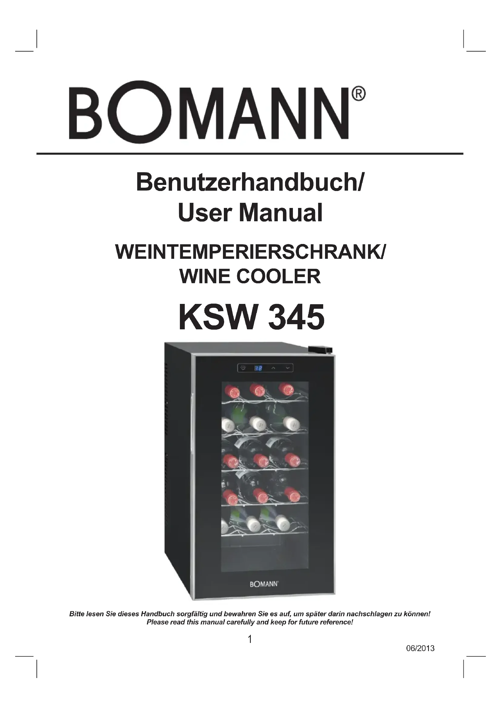 Bitte lesen Sie dieses Handbuch sorgfältig und bewahren Sie es auf, um später darin nachschlagen zu können!Please read this manual carefully and keep for future reference! Benutzerhandbuch/ User Manual WEINTEMPERIERSCHRANK/ WINE COOLER KSW 3452 06/2013
