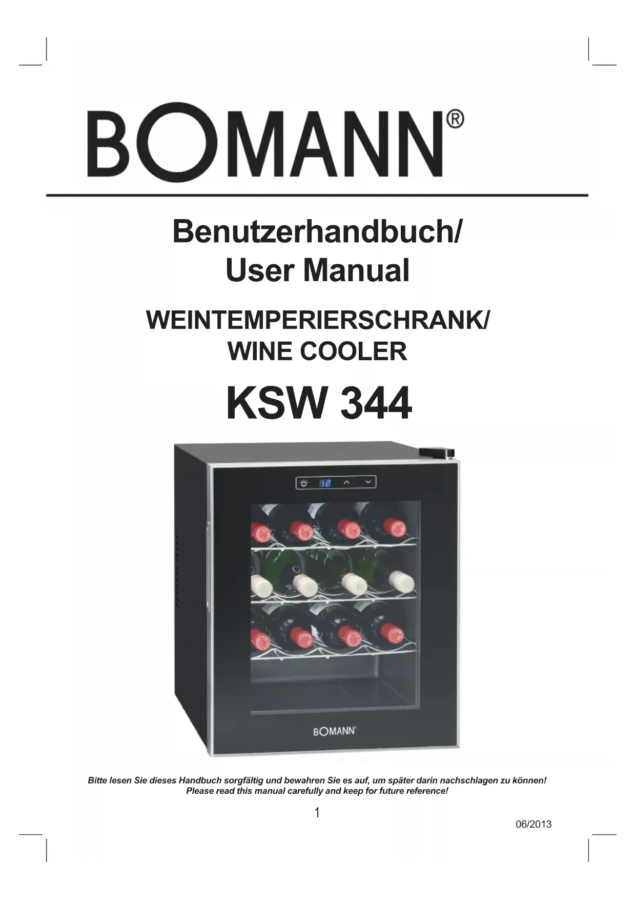 Bitte lesen Sie dieses Handbuch sorgfältig und bewahren Sie es auf, um später darin nachschlagen zu können!Please read this manual carefully and keep for future reference! Benutzerhandbuch/ User Manual WEINTEMPERIERSCHRANK/ WINE COOLER KSW 3442 06/2013