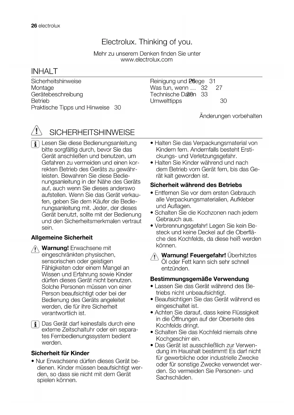 - Das Gerät ist ausschließlich zur Verwen- dung im Haushalt bestimmt! Es darf nicht für gewerbliche oder industrielle Zwecke oder für sonstige Zwecke verwendet wer- den. So vermeiden Sie Personen- und Sachschäden. 26 electrolux• Verwenden Sie Töpfe und Pfannen mit ei- nem Boden, der der Größe der Kochzo- ne entspricht.