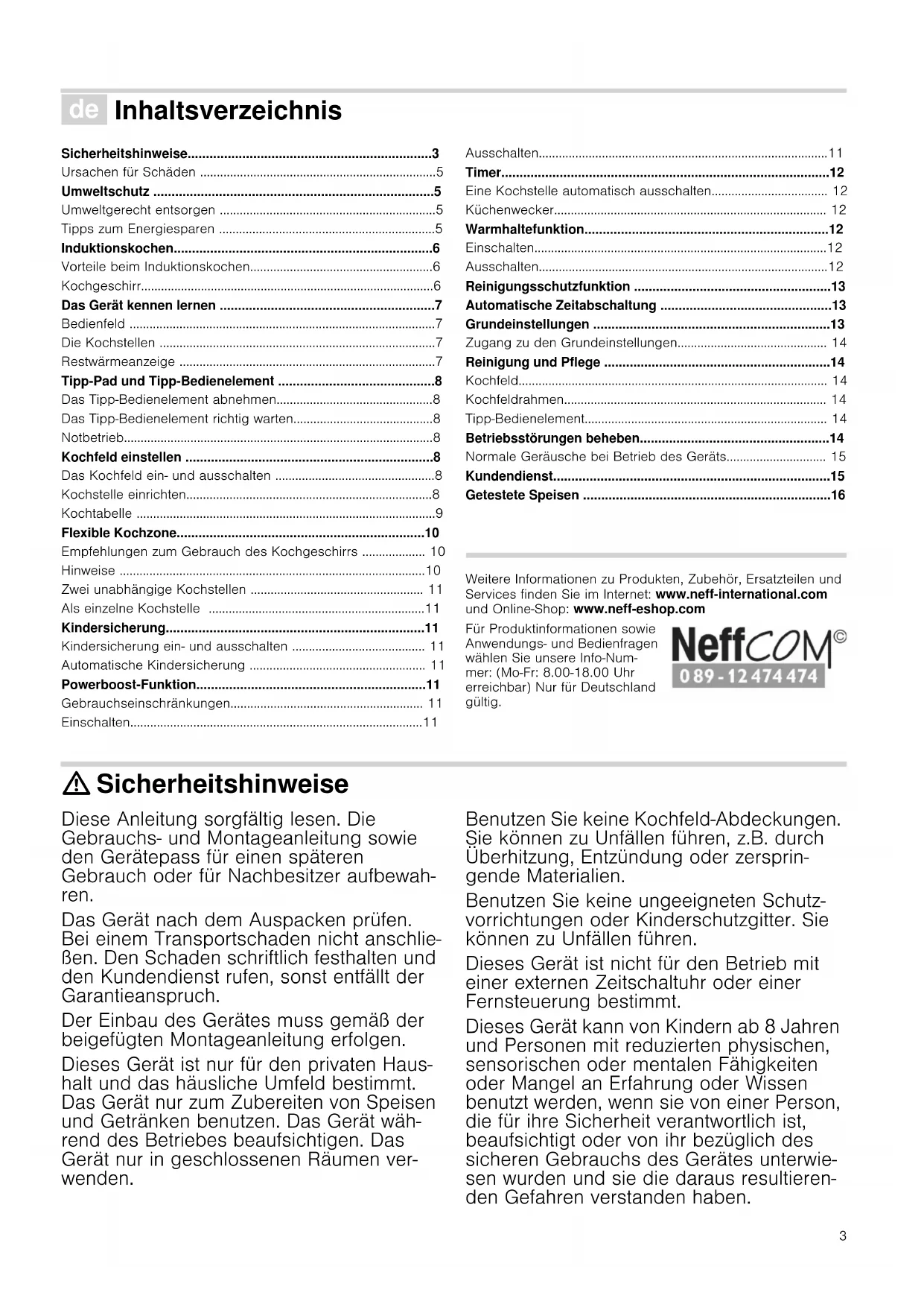 Weitere Informationen zu Produkten, Zubehör, Ersatzteilen und Services finden Sie im Internet: www.neff-international.com und Online-Shop: www.neff-eshop.com