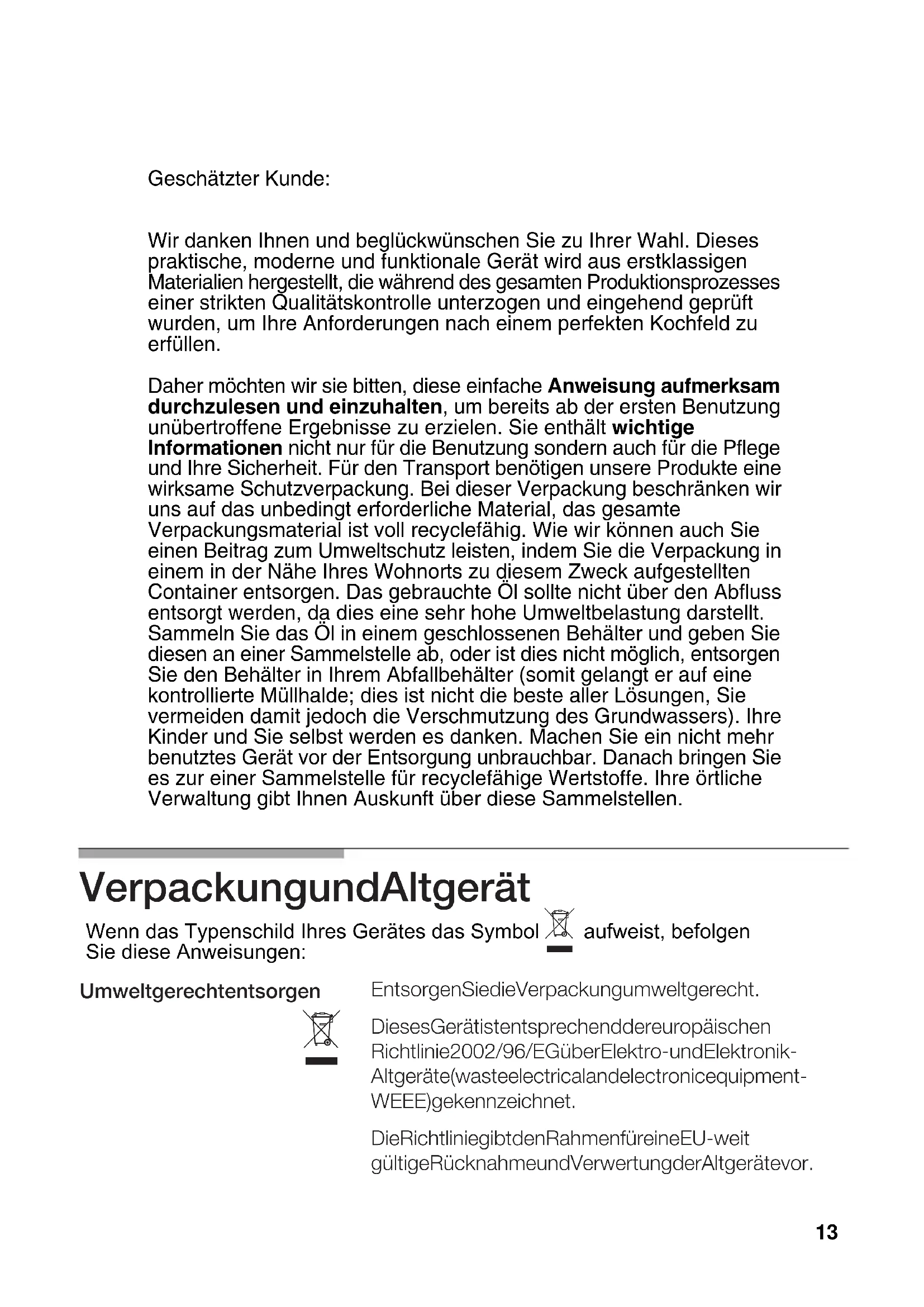 aufweist, befolgen Sie diese Anweisungen: erfüllen. 13INHALT Sicherheitshinweise Dies sind die Bestandteile Ihres Kochfelds Gasbrenner Empfohlene Durchmesser (cm) der Kochgeräte Zusatzroste Warnhinweise bei der Benutzung Kochen Betriebsstörunggen Garantiebedingungen