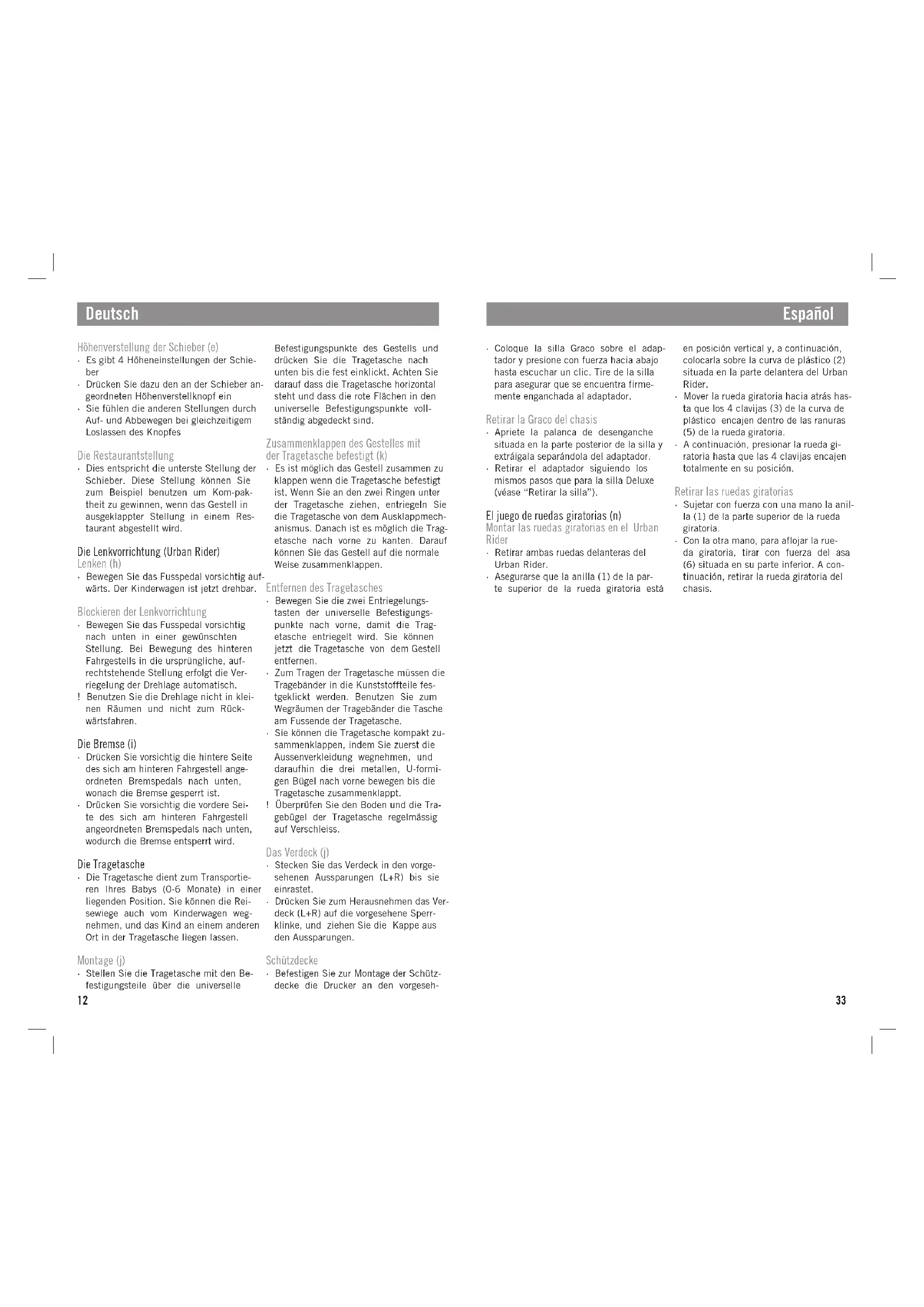 - WARNUNG: Achten Sie immer darauf dass die Originalzubehörteile richtig befestigt sind bevor Sie den Kinderwa- gen benützen.