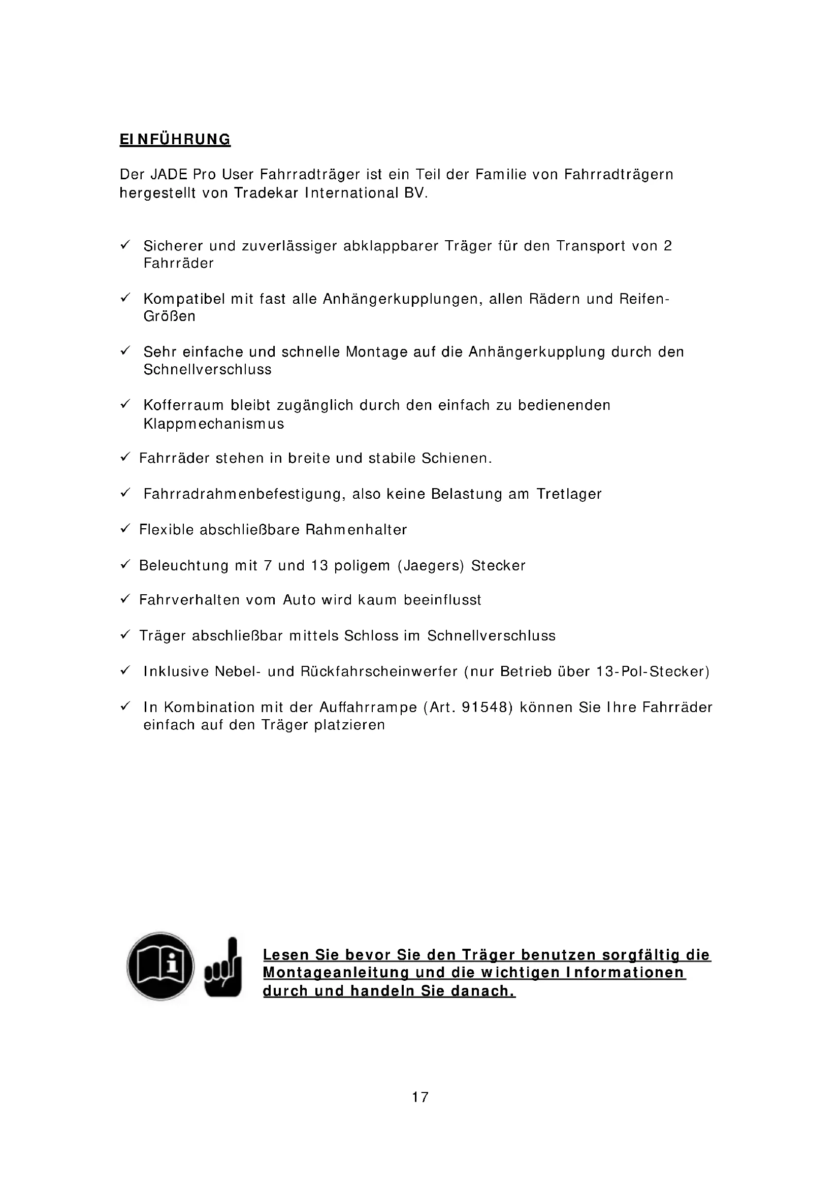 Jade 91528 - Fahrradträger Pro-User - Kostenlose Bedienungsanleitung