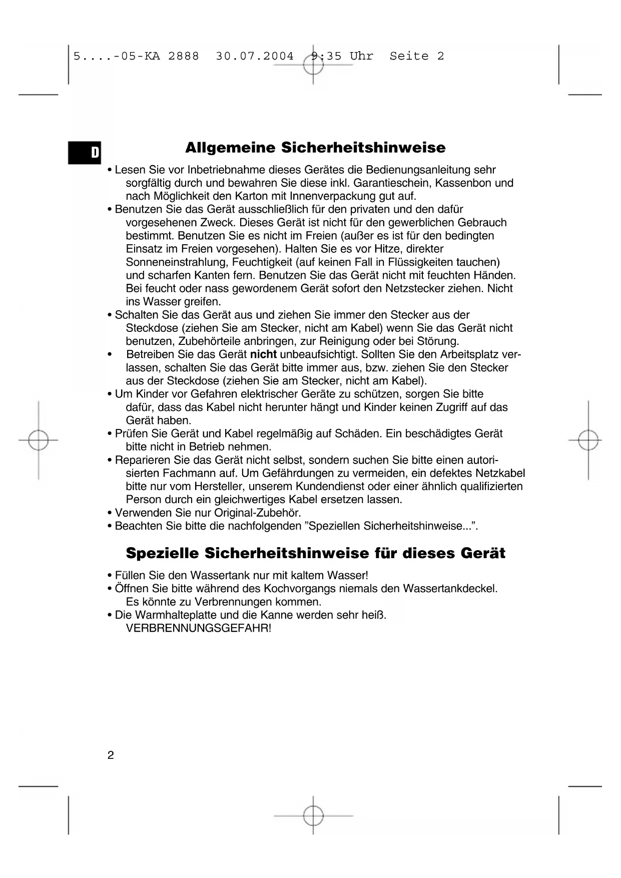 5....-05-KA 2888 30.07.2004 9:35 Uhr Seite 2Vor der Inbetriebnahme