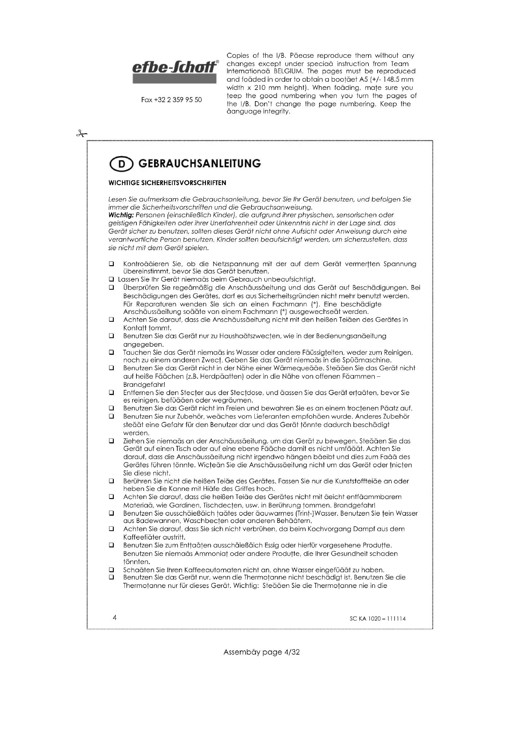 Finden Sie kostenlos die Bedienungsanleitung des Geräts KA 1020 Efbe-Schott als PDF.