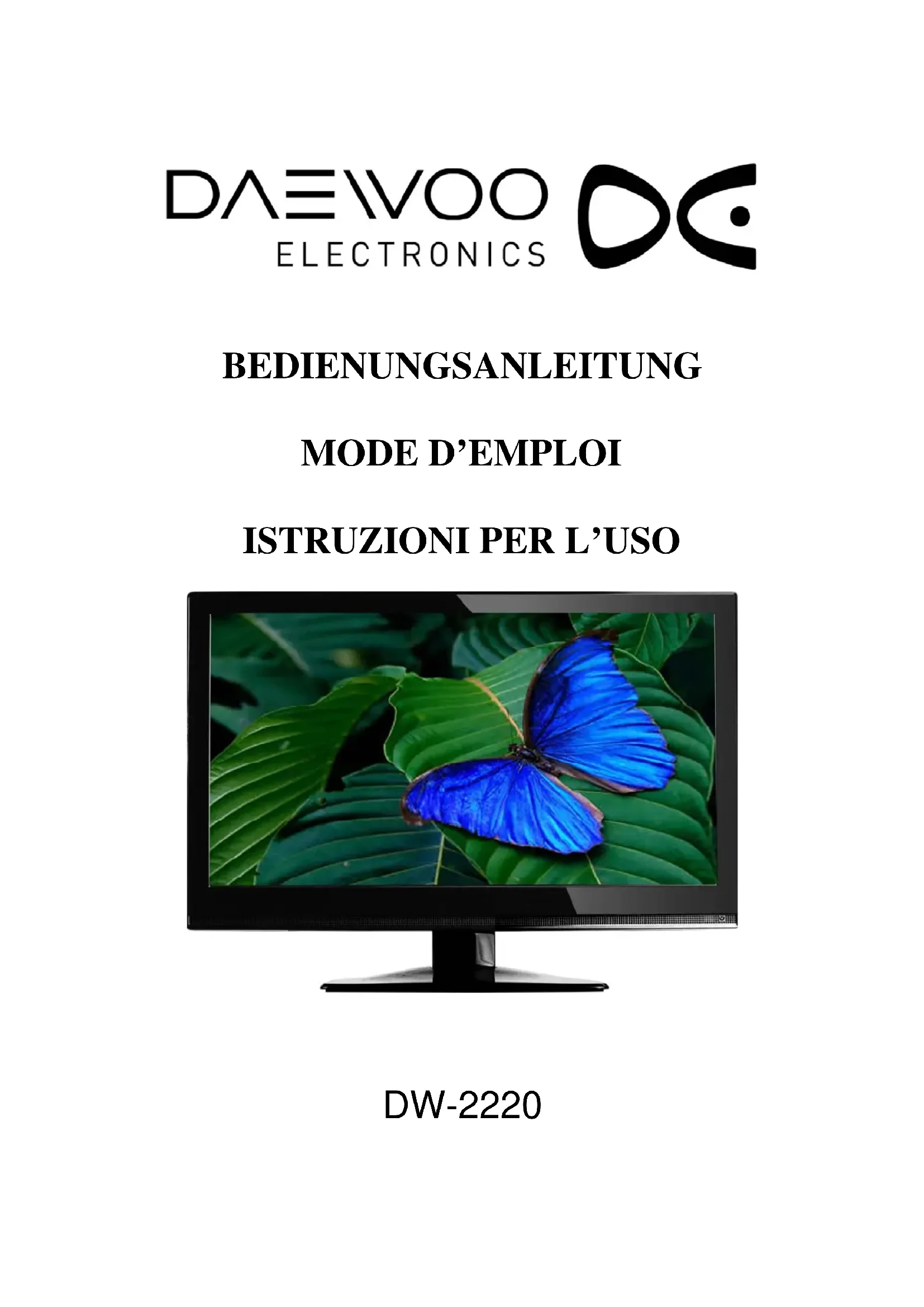 Laden Sie die Anleitung für Ihr Fernseher kostenlos im PDF-Format! Finden Sie Ihr Handbuch DW2220 - DAEWOO und nehmen Sie Ihr elektronisches Gerät wieder in die Hand. Auf dieser Seite sind alle Dokumente veröffentlicht, die für die Verwendung Ihres Geräts notwendig sind. DW2220 von der Marke DAEWOO.