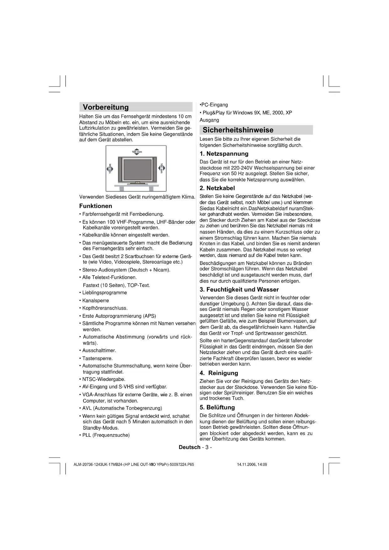 - PLL (Frequenzsuche) ALM-20736-1243UK-17MB24-(HP LINE OUT-WO YPbPr)-50097224.P65 14.11.2006, 14:093Deutsch - 4 -
