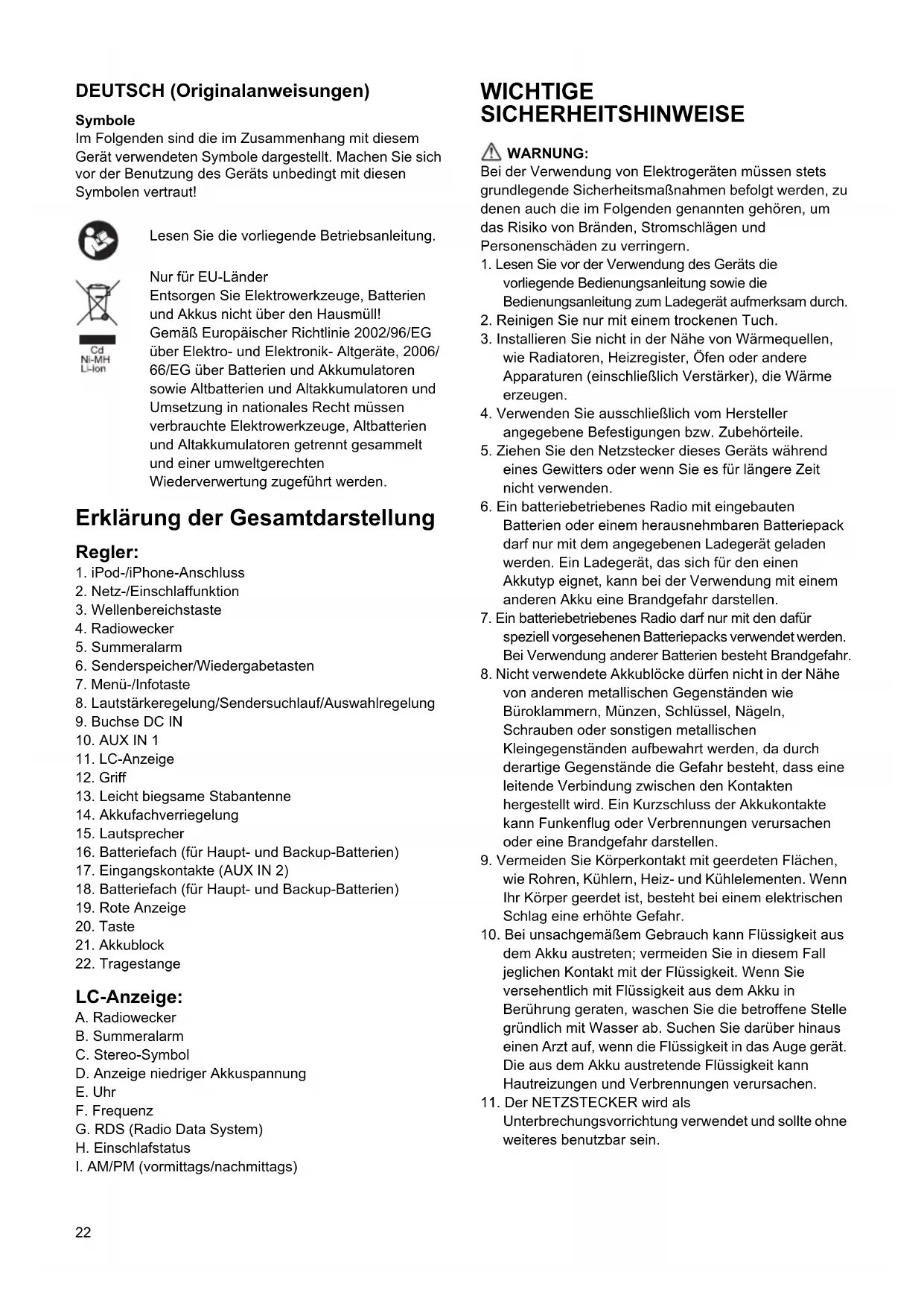 7. Ein batteriebetriebenes Radio darf nur mit den dafür