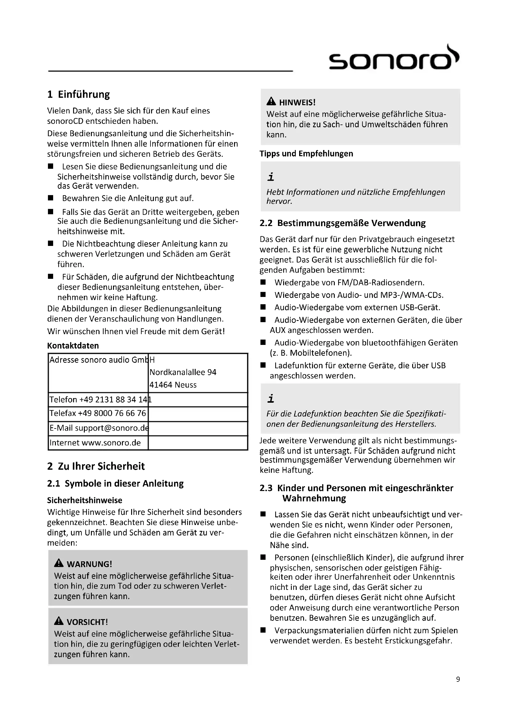 Vielen Dank, dass Sie sich für den Kauf eines sonoroCD entschieden haben.