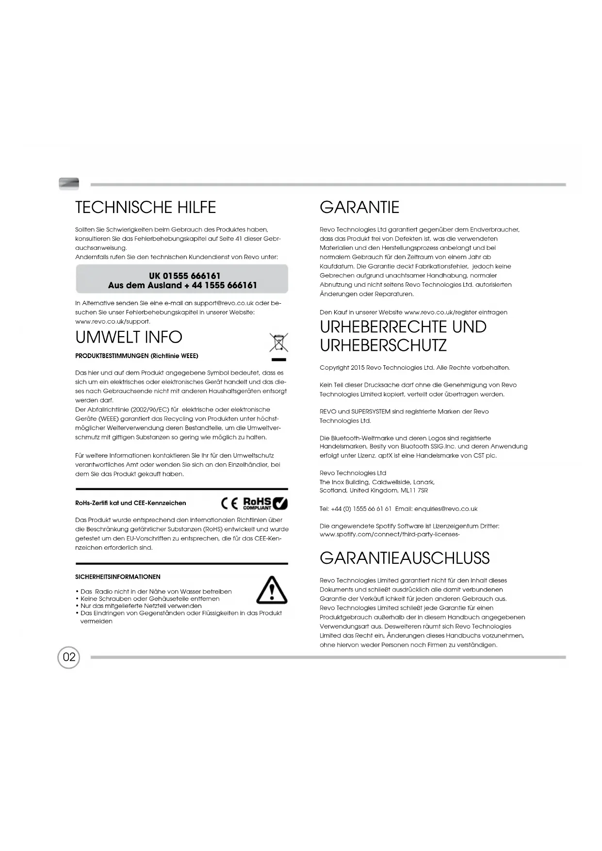 Kein Teil dleser Drucksache darf ohne die Genehmigung von Revo Technologies Limited kopiert, verteil oder übertragen werden.