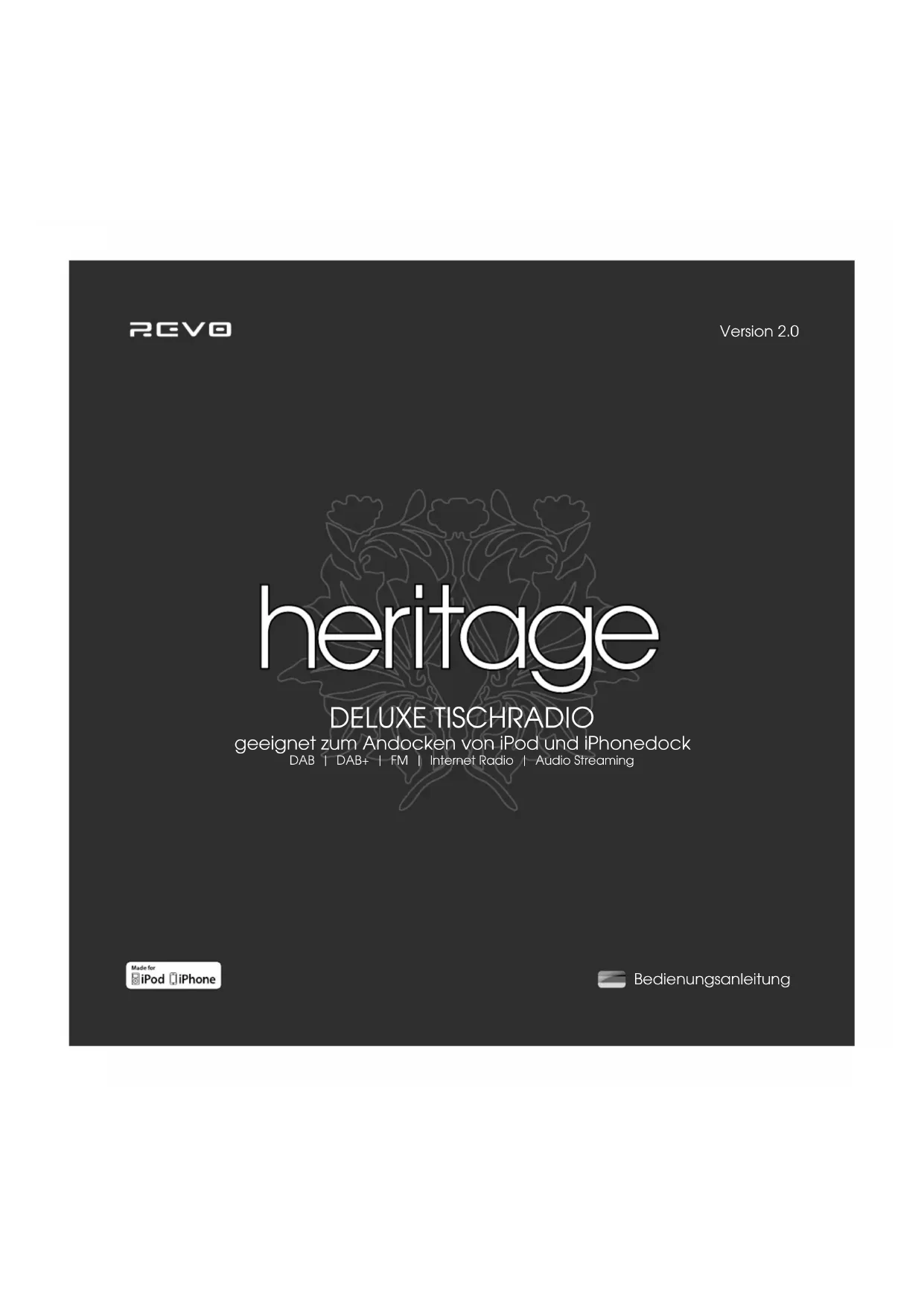 Heritage ist die moderne Neutinterpretation des klassischen, europäischen Tischradios aus den 60er Jahren. Ein Multi-Format-Digitalradio, das Radostandards wie DAB, DAB+, UKW und WI-Fl-Internetradio untersuit, aber auch kabelloses Streaming Audio bletet und als iPod- und iPhone-Dockingstation eingesetzt werden kann.