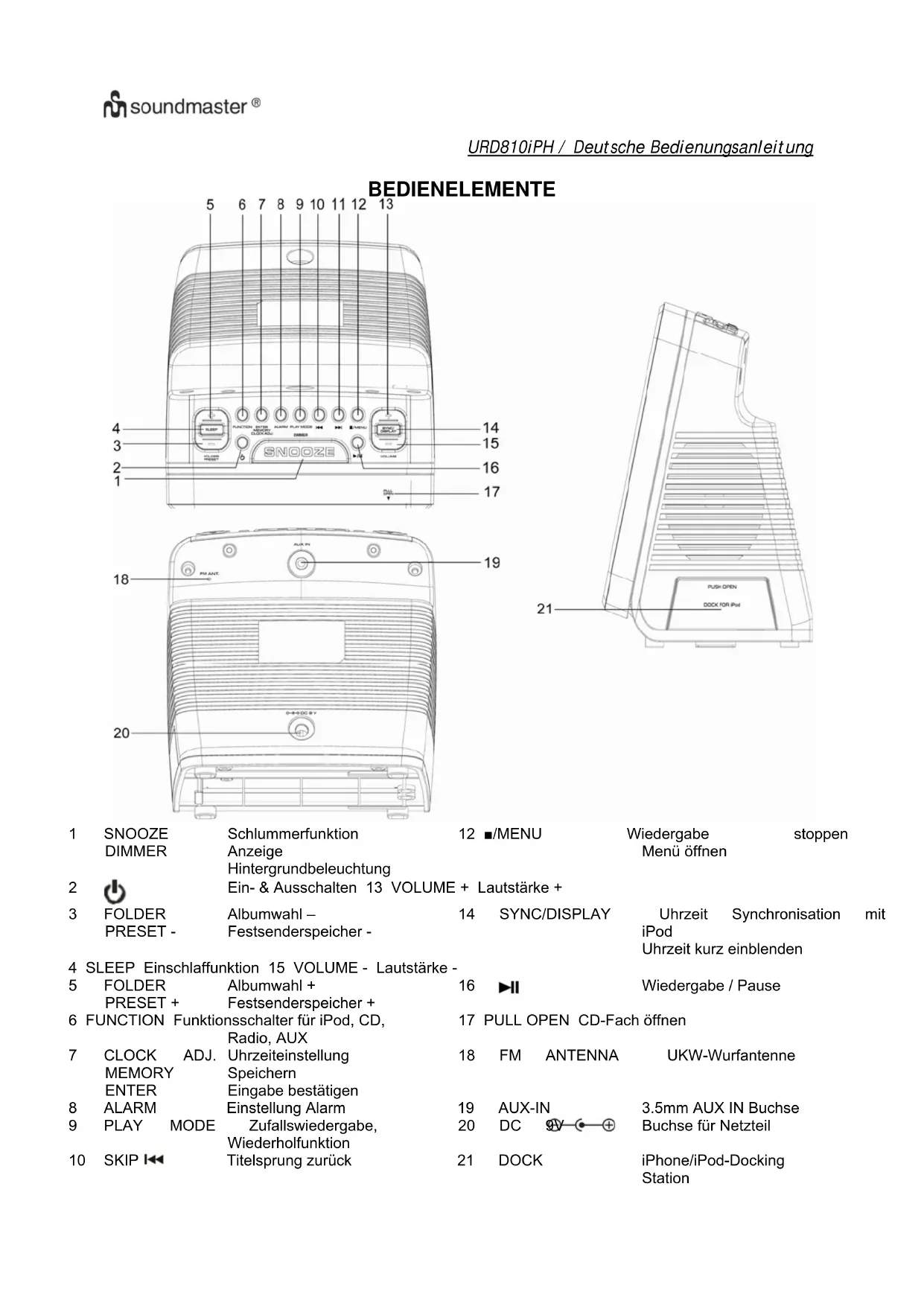 BEDIENUNGSANLEITUNG URD810iPH Soundmaster