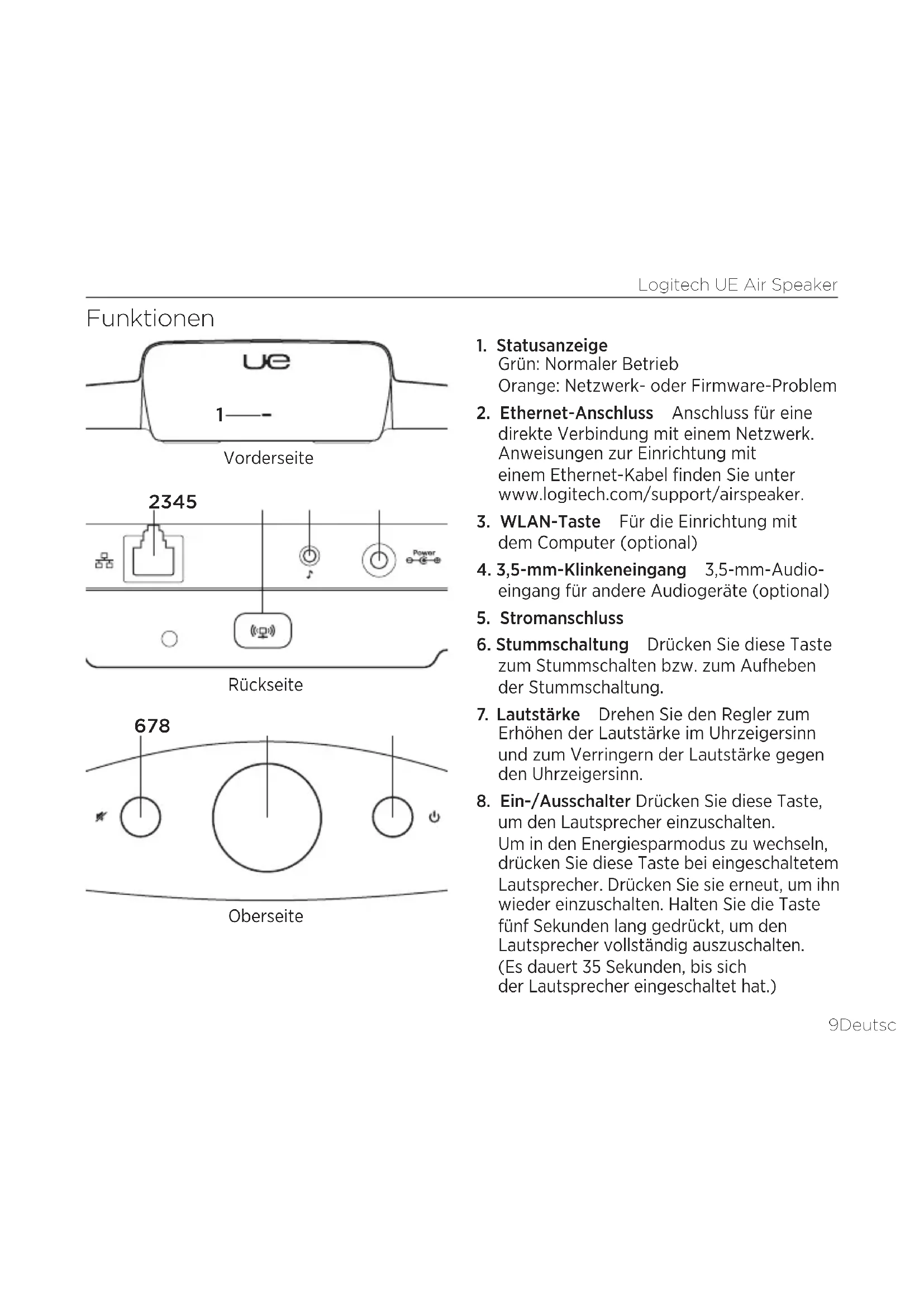 BEDIENUNGSANLEITUNG UE Air Speaker LOGITECH
