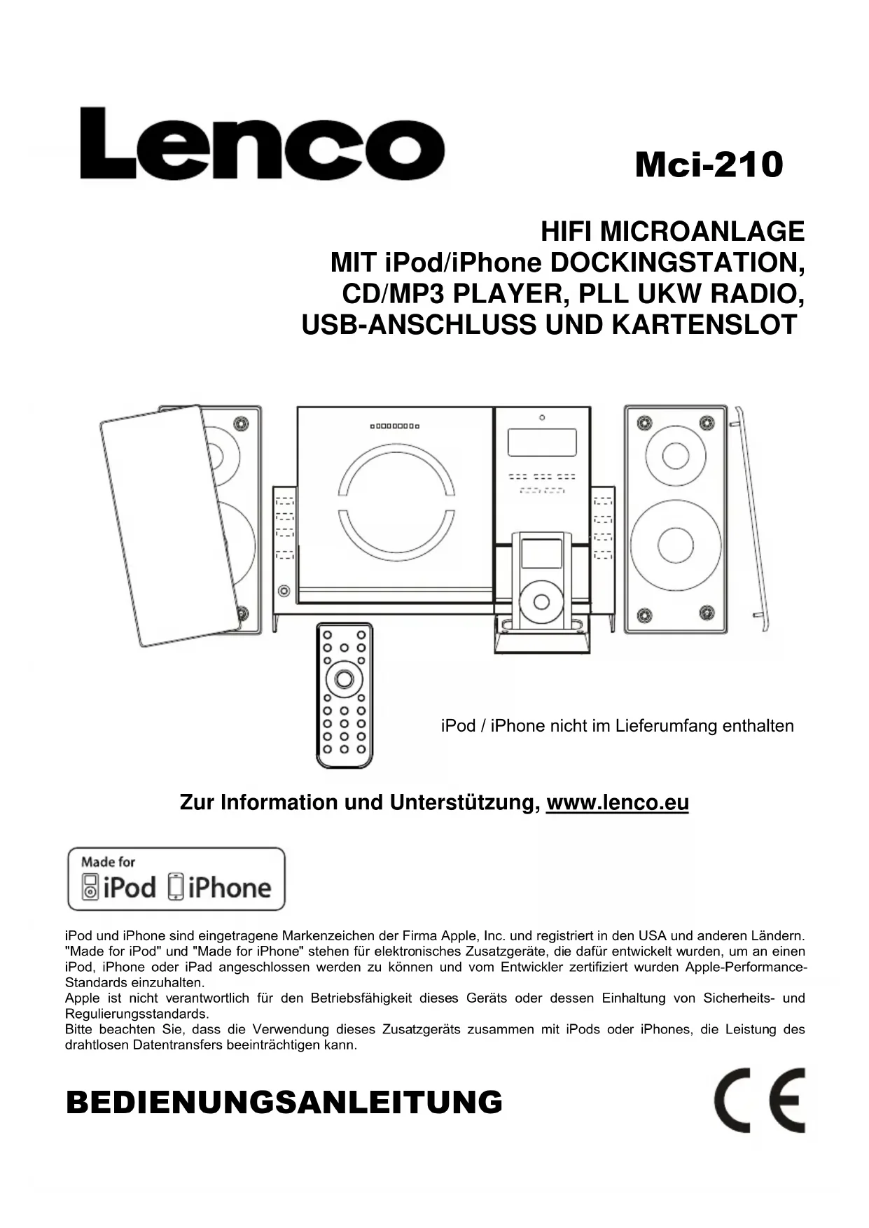 Finden Sie kostenlos die Bedienungsanleitung des Geräts MCI210 LENCO als PDF.