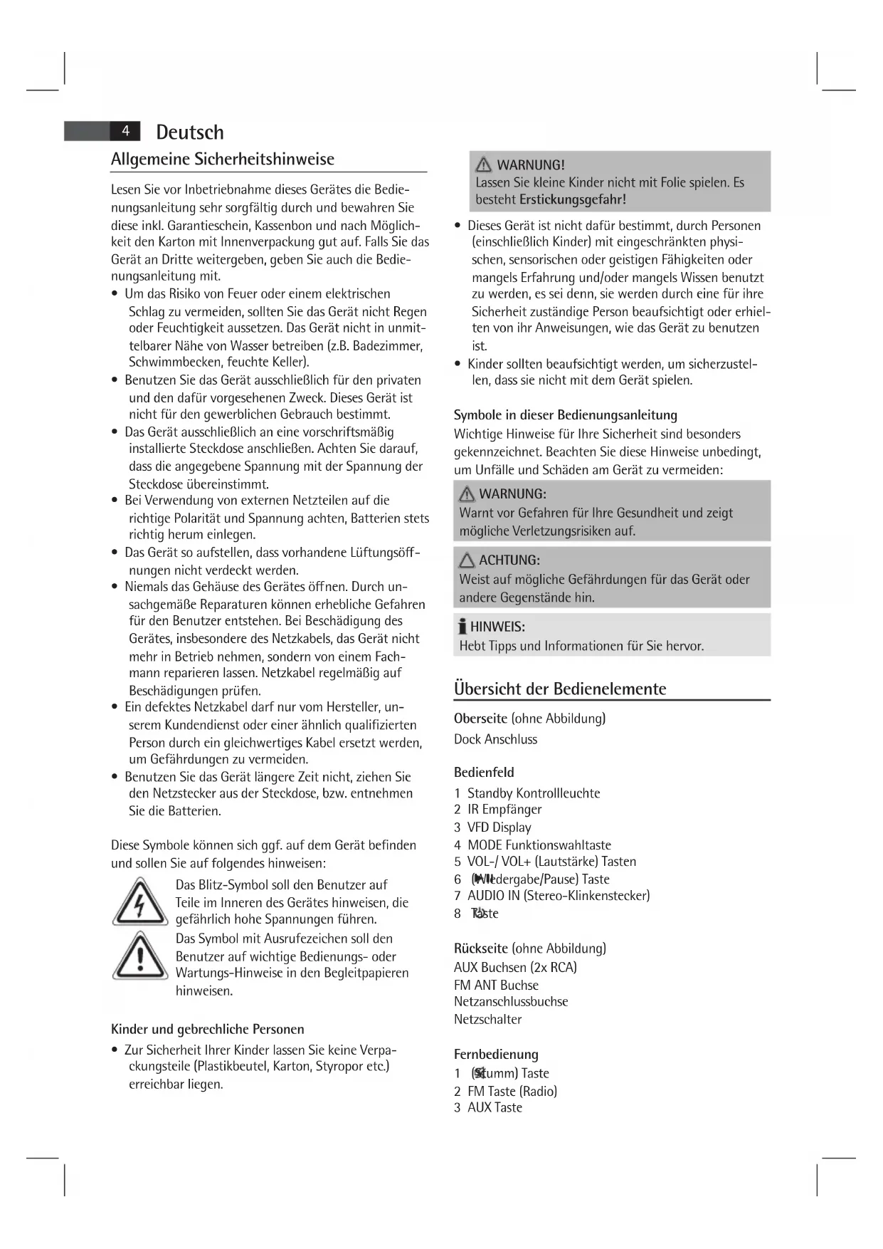 - Betreiben Sie das Gerät nicht auf maximaler Lautstärke. Dies kann zu Beschädigungen führen.