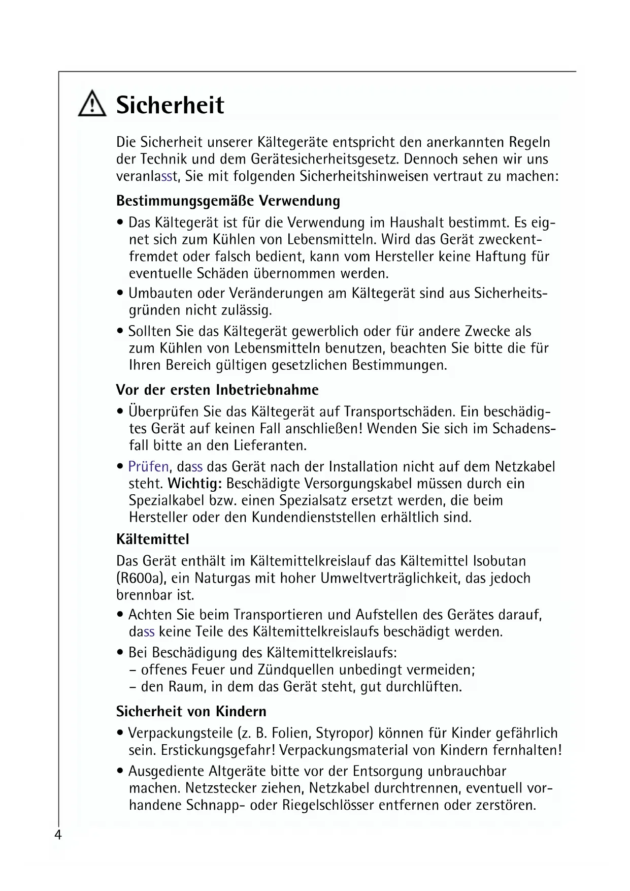 - Fachbegriffe Sicherheit Die Sicherheit unserer Kältegeräte entspricht den anerkannten Regeln der Technik und dem Gerätesicherheitsgesetz. Dennoch sehen wir uns veranlasst, Sie mit folgenden Sicherheitshinweisen vertraut zu machen: Bestimmungsgemäße Verwendung p. 214