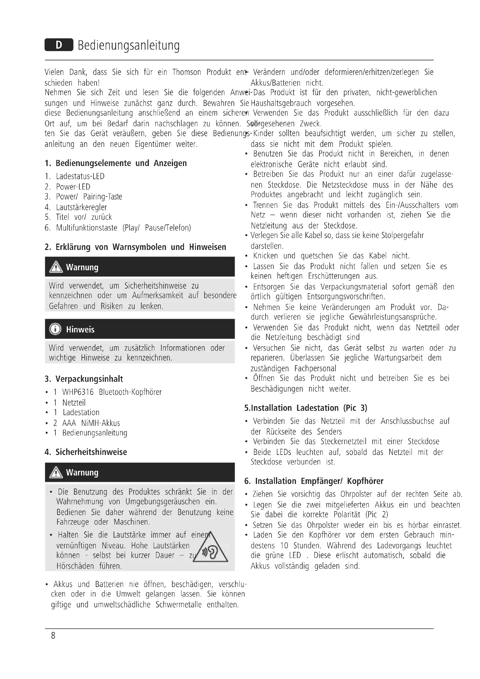 Finden Sie kostenlos die Bedienungsanleitung des Geräts WHP6316BT THOMSON als PDF.