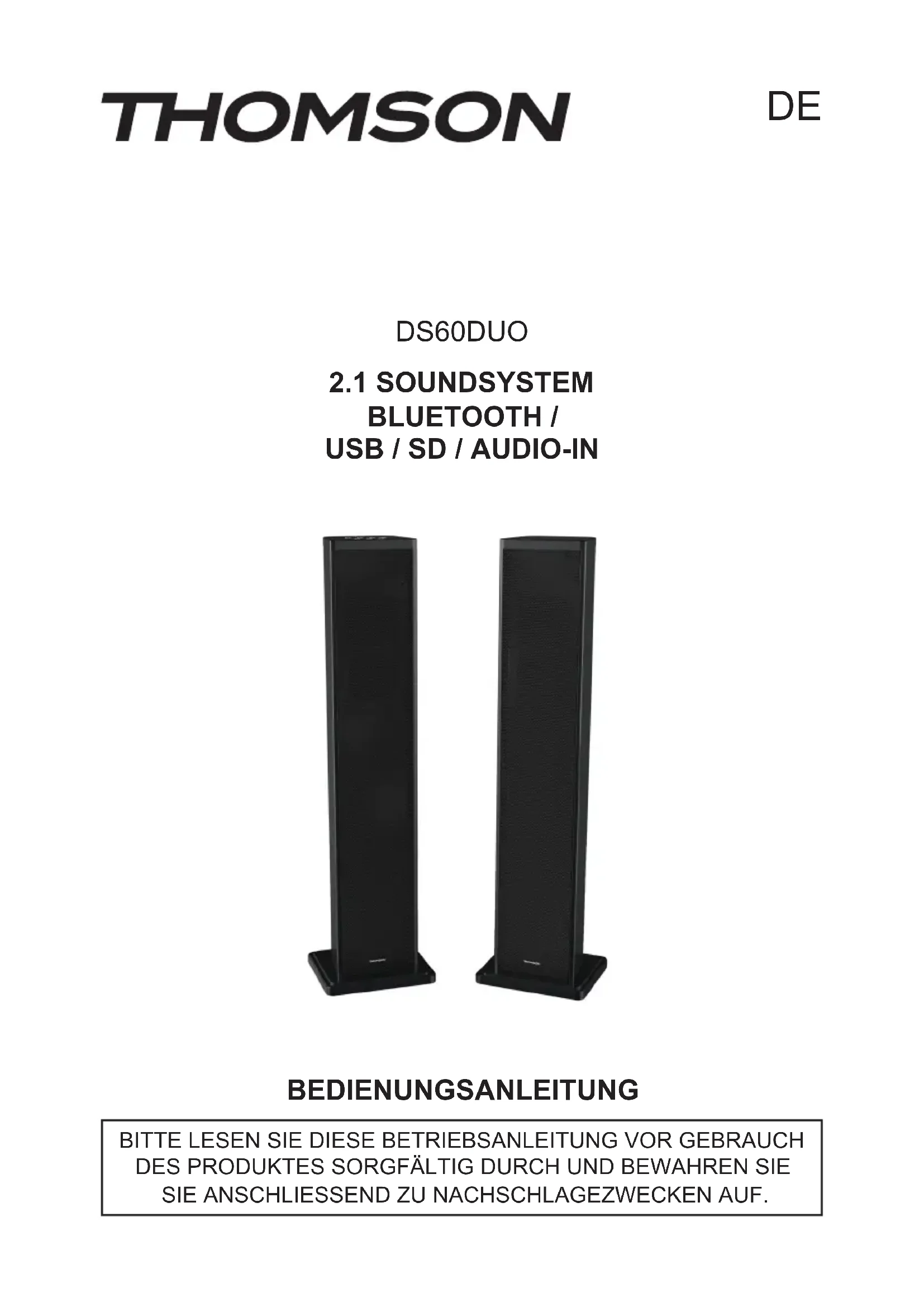 Laden Sie die Anleitung für Ihr Hifi-system kostenlos im PDF-Format! Finden Sie Ihr Handbuch DS60DUO - THOMSON und nehmen Sie Ihr elektronisches Gerät wieder in die Hand. Auf dieser Seite sind alle Dokumente veröffentlicht, die für die Verwendung Ihres Geräts notwendig sind. DS60DUO von der Marke THOMSON.
