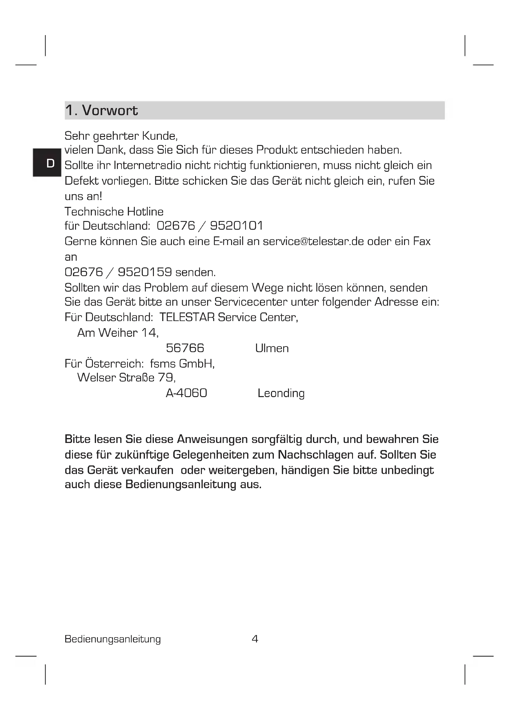 Für Deutschland: TELESTAR Service Center,