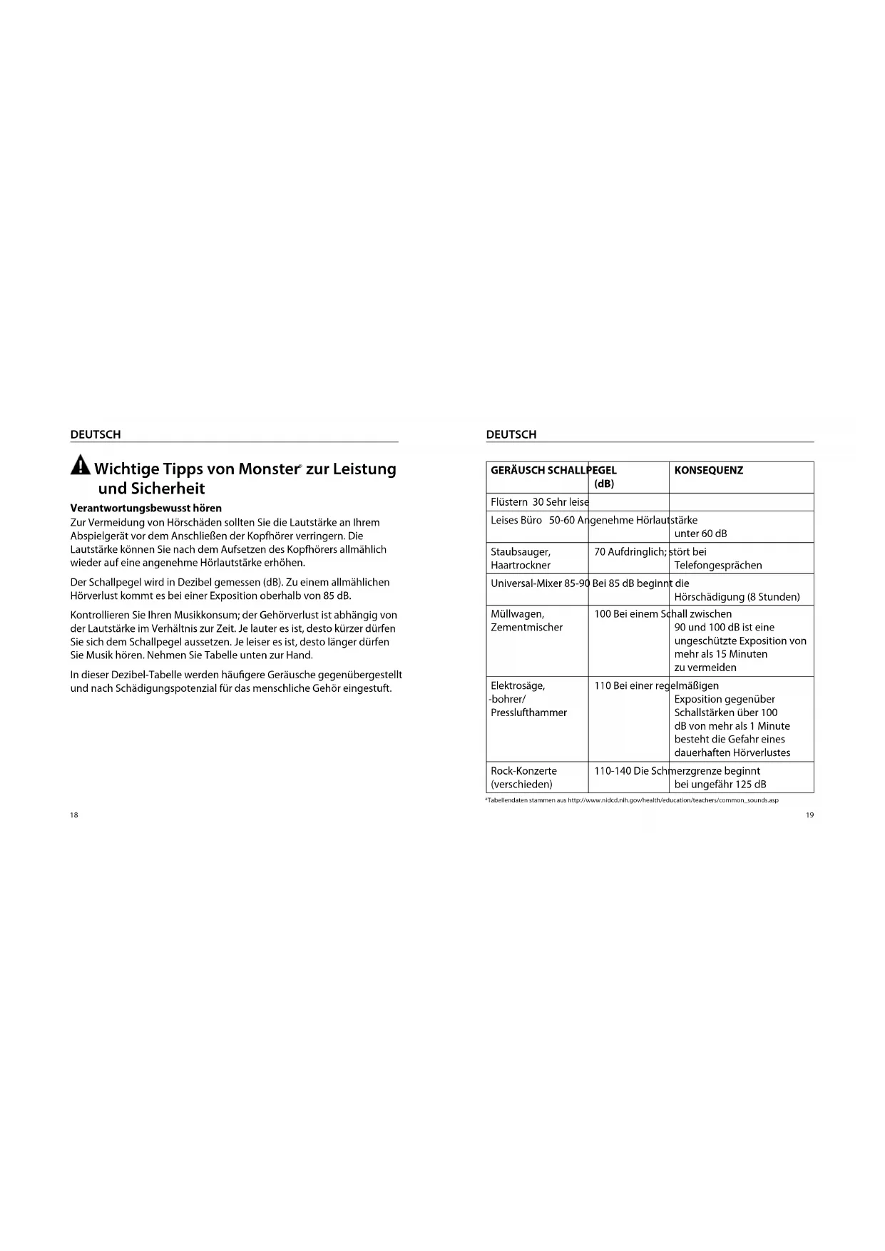 | GERÄUSCH SCHALLPEGEL(dB) | KONSEQUENZ | |
