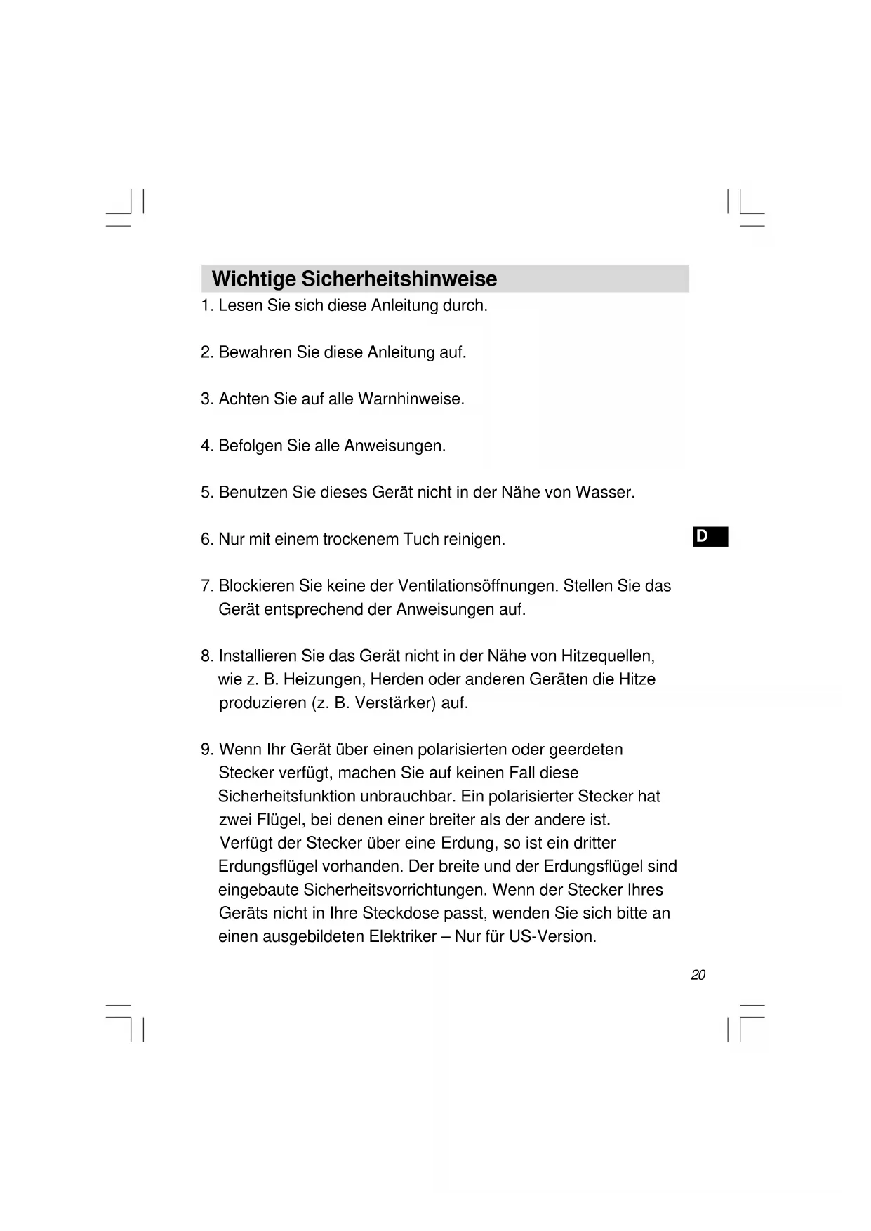 vermeiden Sie es das Gerät Regen oder Feuchtigkeit auszusetzen.22