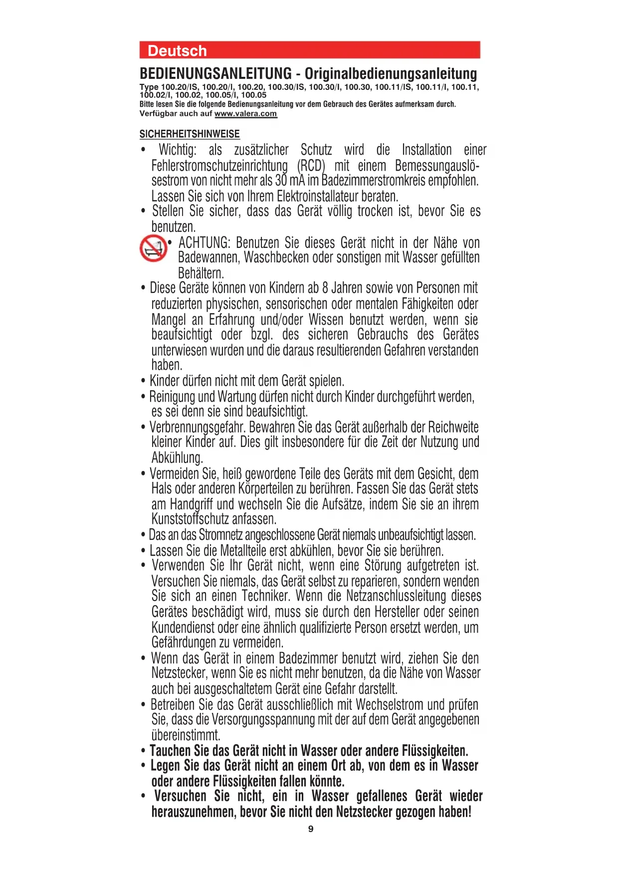 GARANTIEBEDINGUNGEN VALERA leistet für dieses Gerät – zusätzlich zu der gesetzlichen Gewährleistung des Händlers aus Kaufvertrag - dem Endabnehmer gegenüber eine Garantie zu nachstehenden Bedingungen: